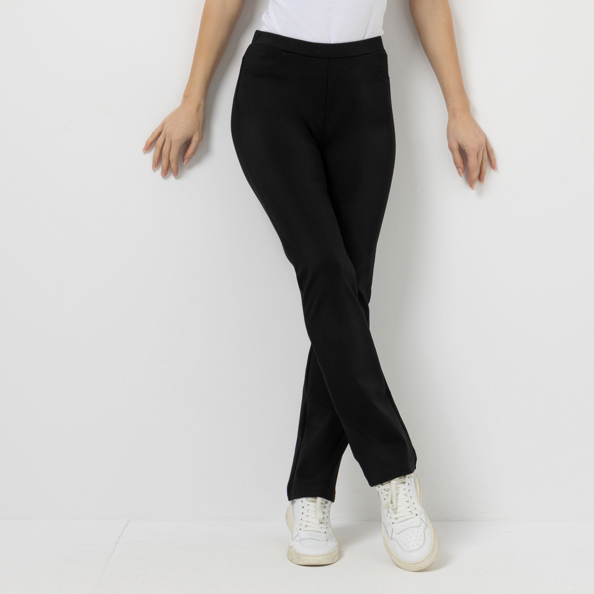 VIA MILANO Hose, 1/1-Länge Rundumdehnbund Fake-Taschen Bootcut-Schnitt