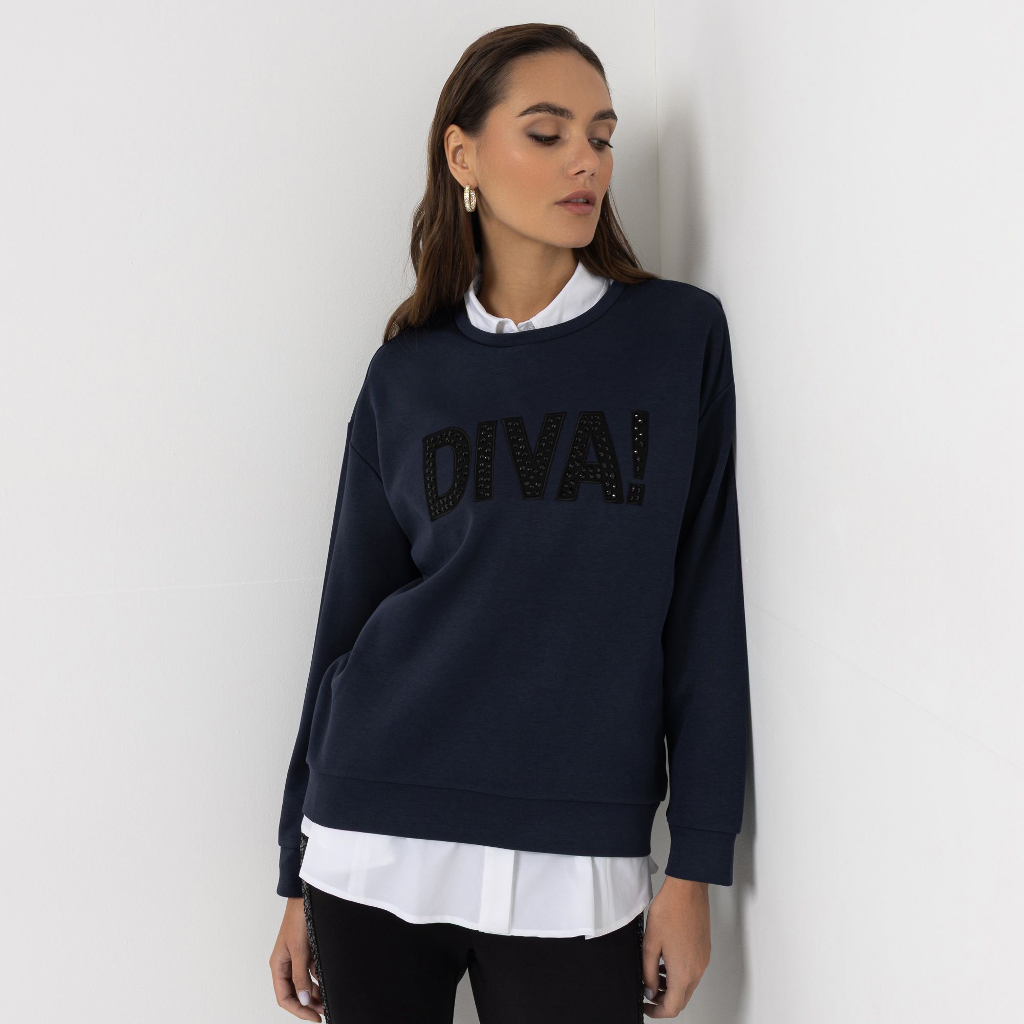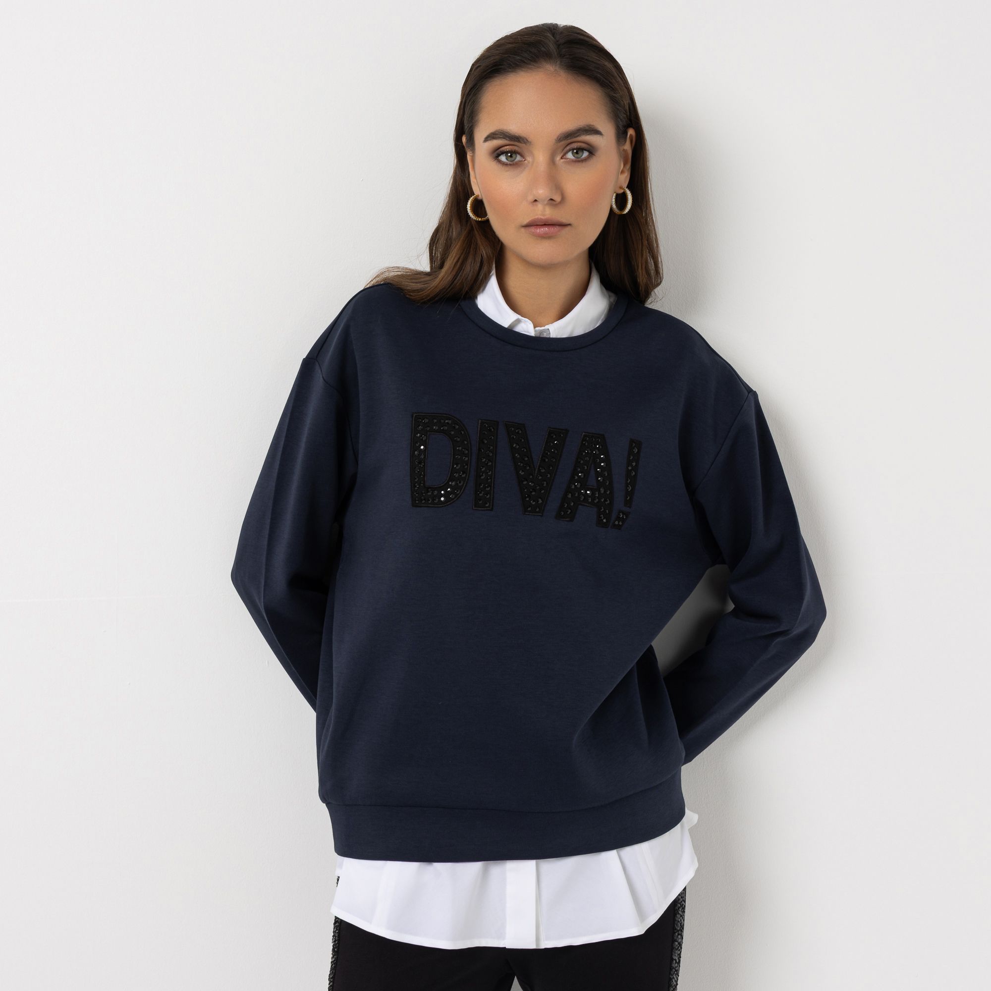 Stylisches Designer-Sweatshirt von STEFFEN SCHRAUT mit Strassapplikation
