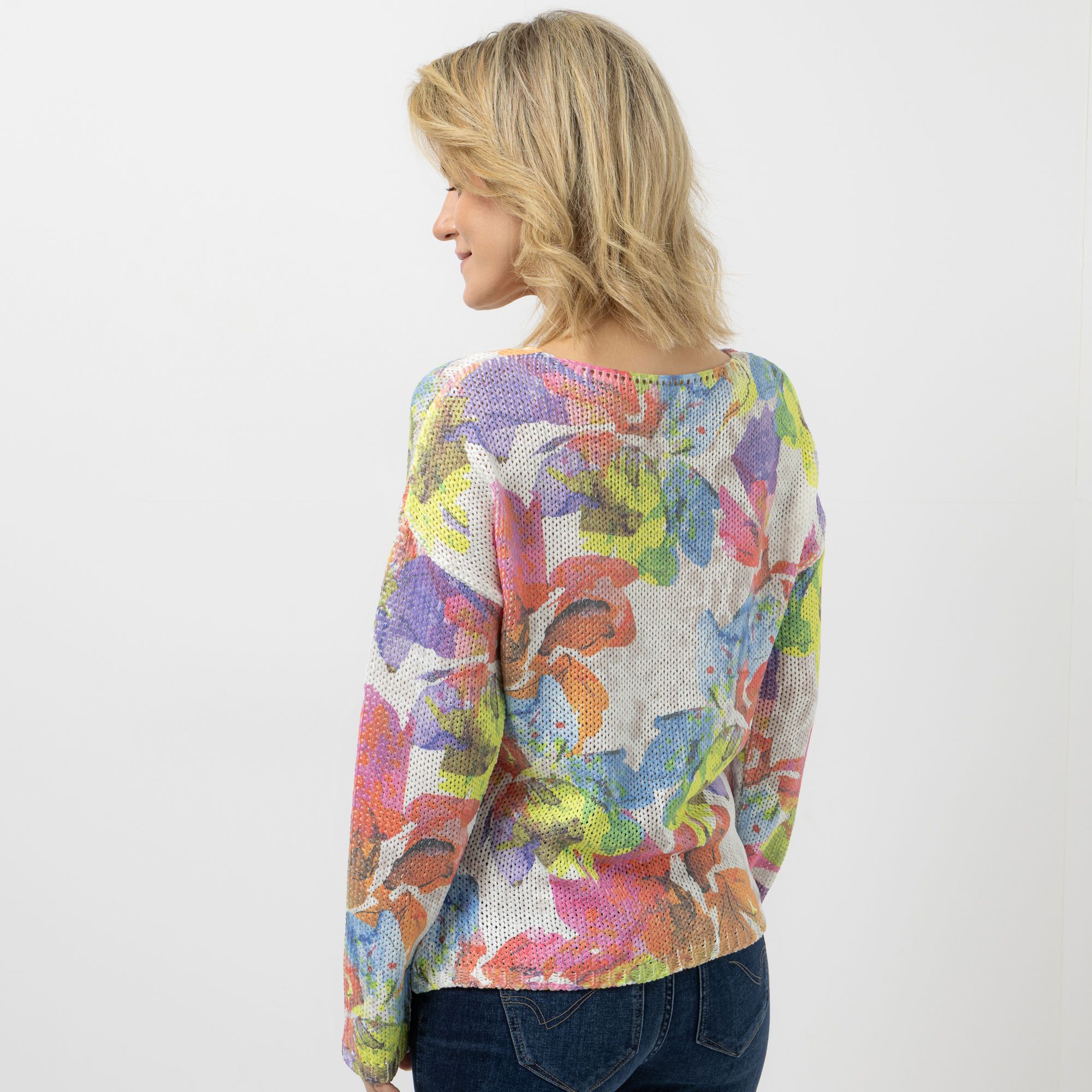 DINE 'N' DANCE Pullover Rundhalsausschnitt bedruckter Strick figurumspielend