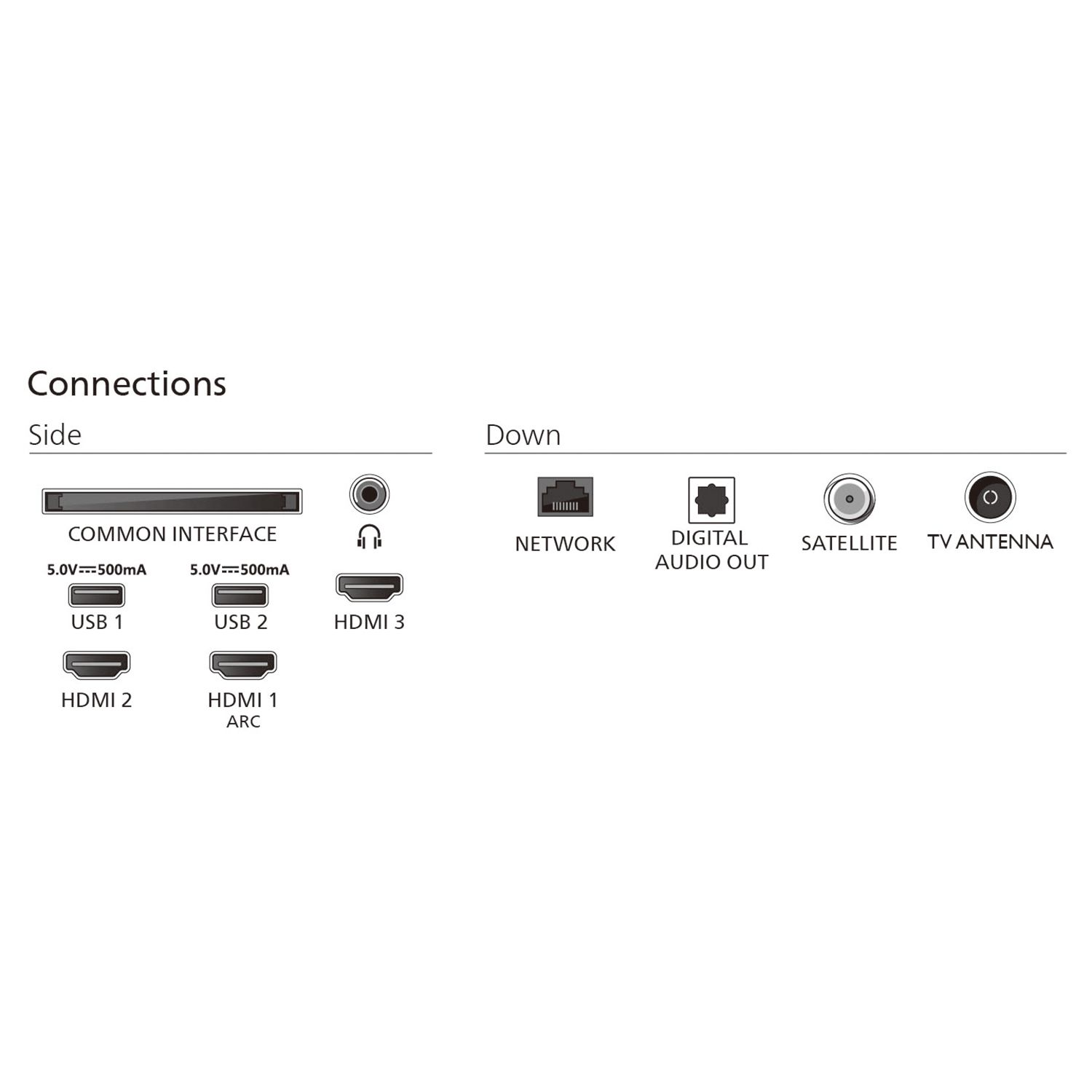 • 3 x HDMI (inkl. ARC auf HDMI 1), 2 x USB, Kopfhörer, CI+
