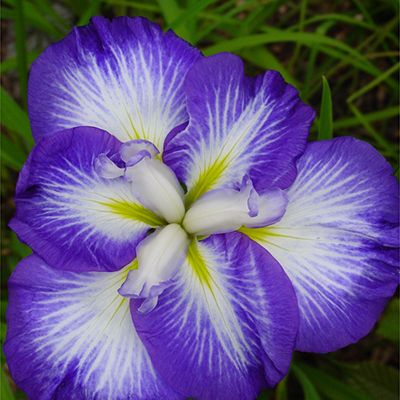 • 2 Zwiebeln Iris Ensata Gusto (Blütenfarbe: Dunkelblau - Weiß mit leicht Gelb)