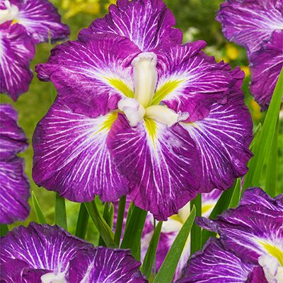 • 2 Zwiebeln Iris Ensata Dinner Plate (Blütenfarbe: Lila mit Weiß und gelber Mitte)
