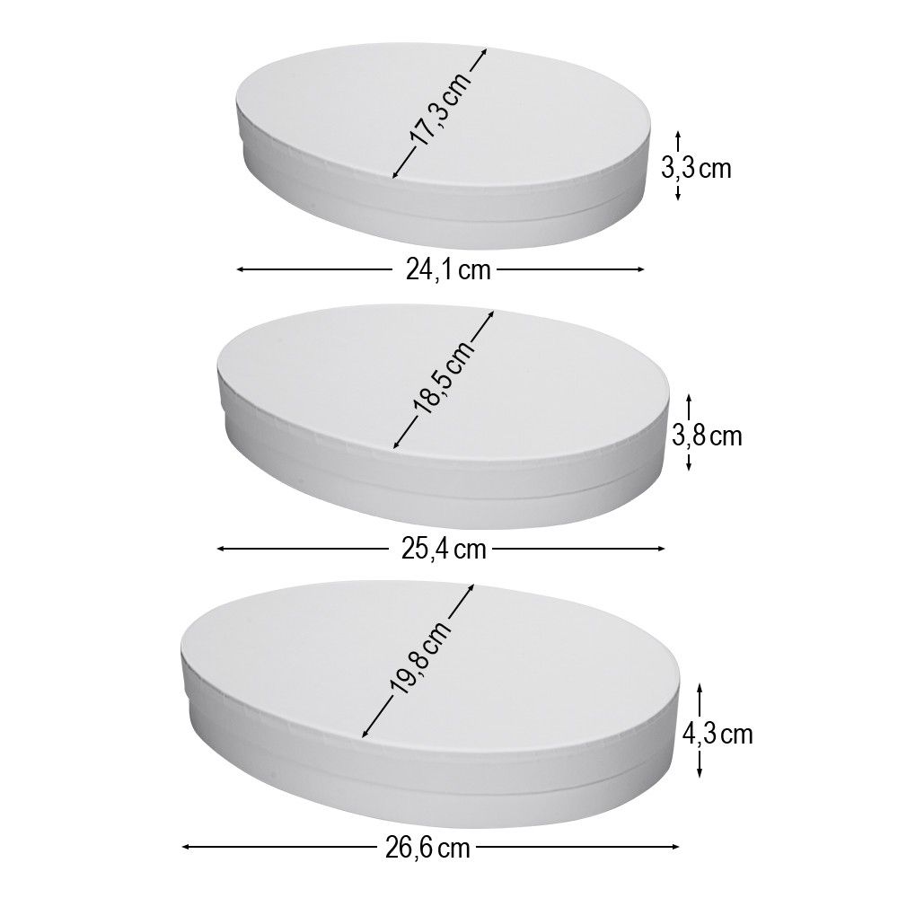 6 Geschenkboxen in Eiform, mit Deckel, weiß, 2 x 3 verschiedene Größen (24,1 x 17,3 x 3,3 cm / 25,4 x 18,5 x 3,8 cm / 26,6 x 19,8 x 4,3 cm)