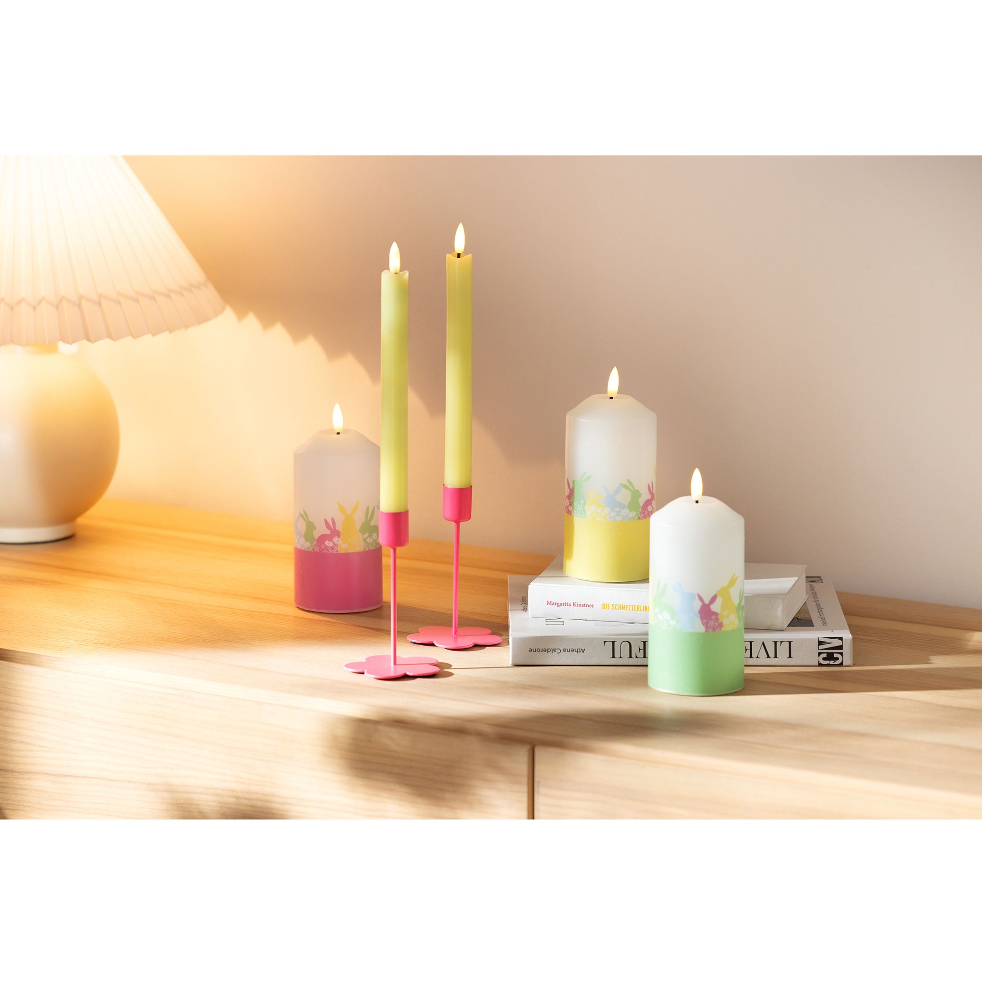 ELAMBIA 4 LED-Tafelkerzen Blumendesign & uni Flamme Luma, Timer Höhe 24cm, Ø 2,2cm