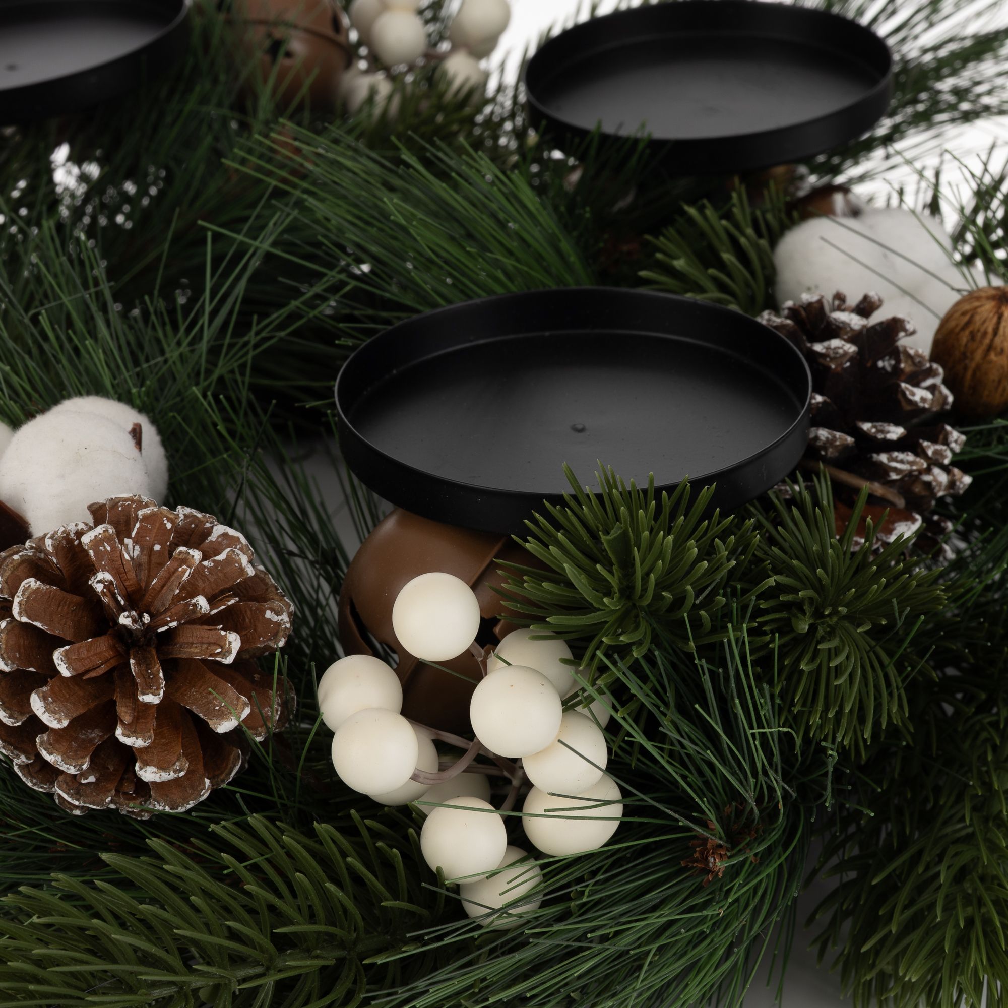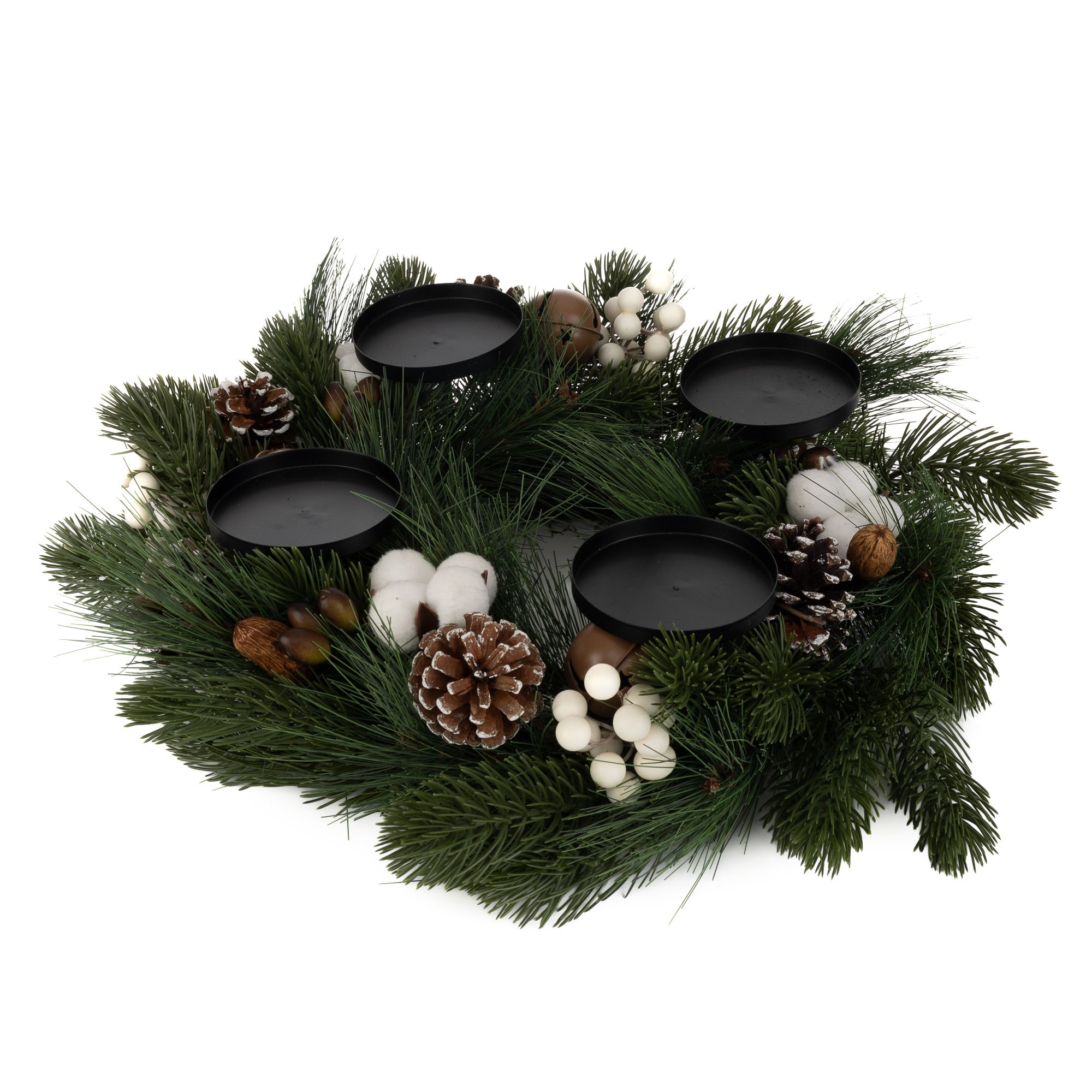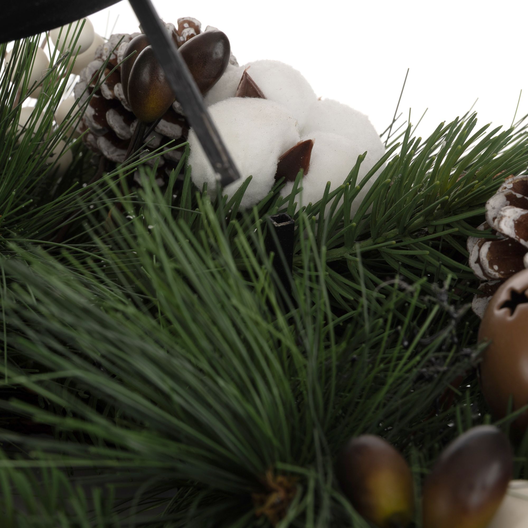 Ob zur Adventszeit oder für andere Festlichkeiten: Der Kranz von ABELLA Flora ist ein harmonischer Schmuck, der im Handumdrehen zum dekorativen Mittelpunkt des Zimmers wird. Der Kranz lässt sich wunderbar mit 4 LED-Kerzen deiner Wahl ausstatten und wird zugleich so zur heimeligen Lichtquelle.