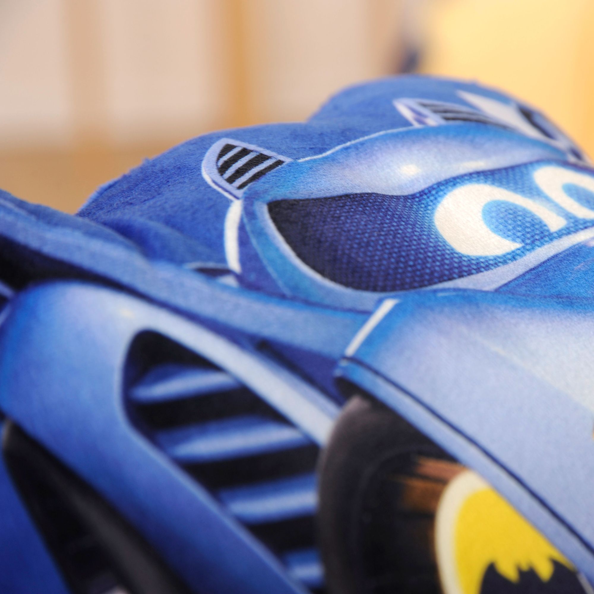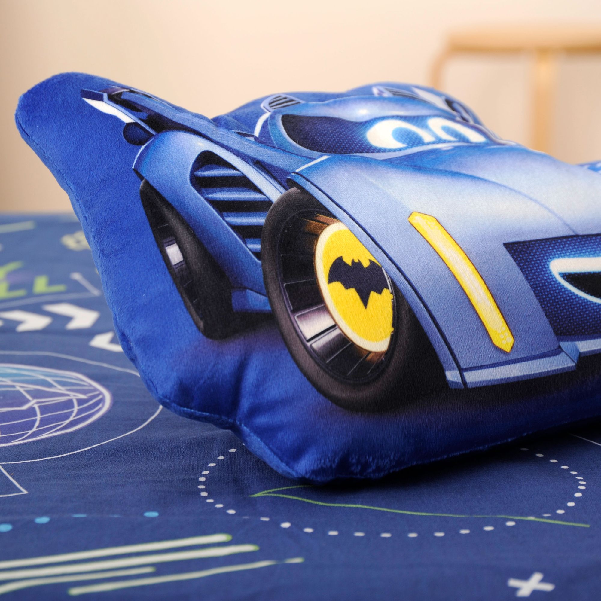 Das weiche Konturenkissen aus Soft Velboa zeigt Batmobil Bam aus der beliebten Batwheels™-Kinderserie. Das waschbare Dekokissen setzt einen fröhlichen Akzent im Kinderzimmer und begleitet kleine Fans durch fantasievolle Abenteuer.
