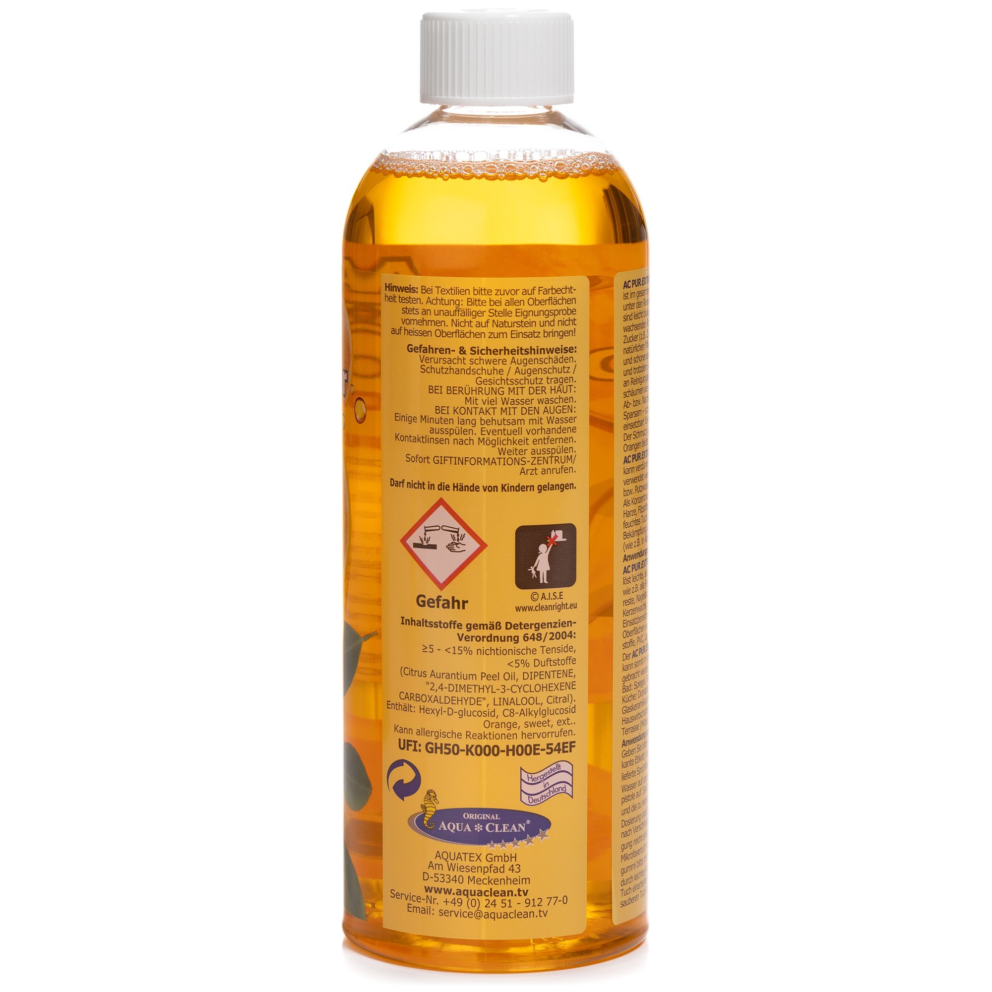 Für alle Aufgaben im Haushalt, die man lieber auf morgen verschieben würde: Dank AQUA CLEAN PUR Extreme Orangenreiniger ist Schluss mit Ausreden! Du willst deine Dunstabzugshaube von Fett befreien oder die Farbkleckse der letzten Renovierung von den Fliesen entfernen? Der Orangenreiniger lässt sich verdünnt als Haushaltsreiniger anwenden oder bei hartknäckigen Verschmutzungen als Konzentrat auf alle wasserverträglichen Oberflächen geben. So werden lästige Reinigungsarbeiten zum Kinderspiel.