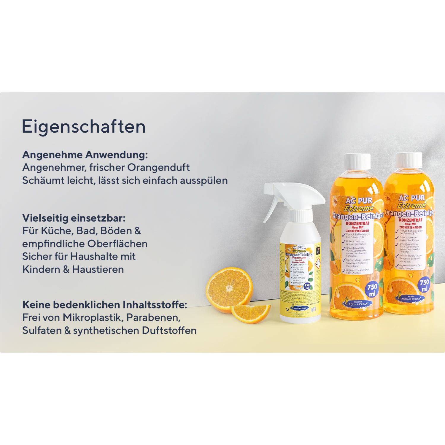 - ideal zur Bekämpfung unangenehmer Gerüche – hinterlässt einen frischen Orangenduft