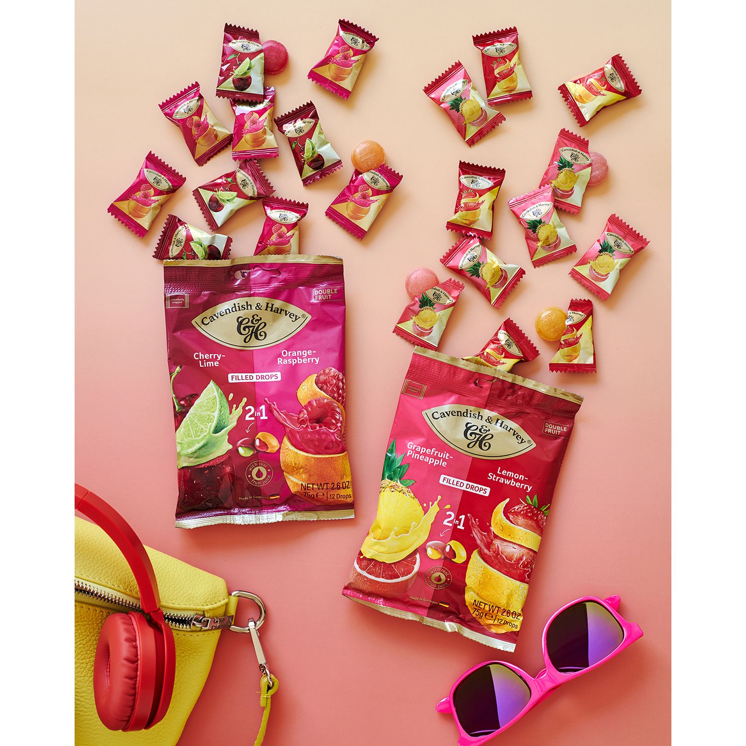 Mit den köstlichen Bonbons von CAVENDISH & HARVEY® genießt du eine bunte Mischung aus fruchtigen Doppelfrucht-Kreationen in praktischen Beuteln und eleganten Dosen – perfekt zum Teilen und Verschenken.