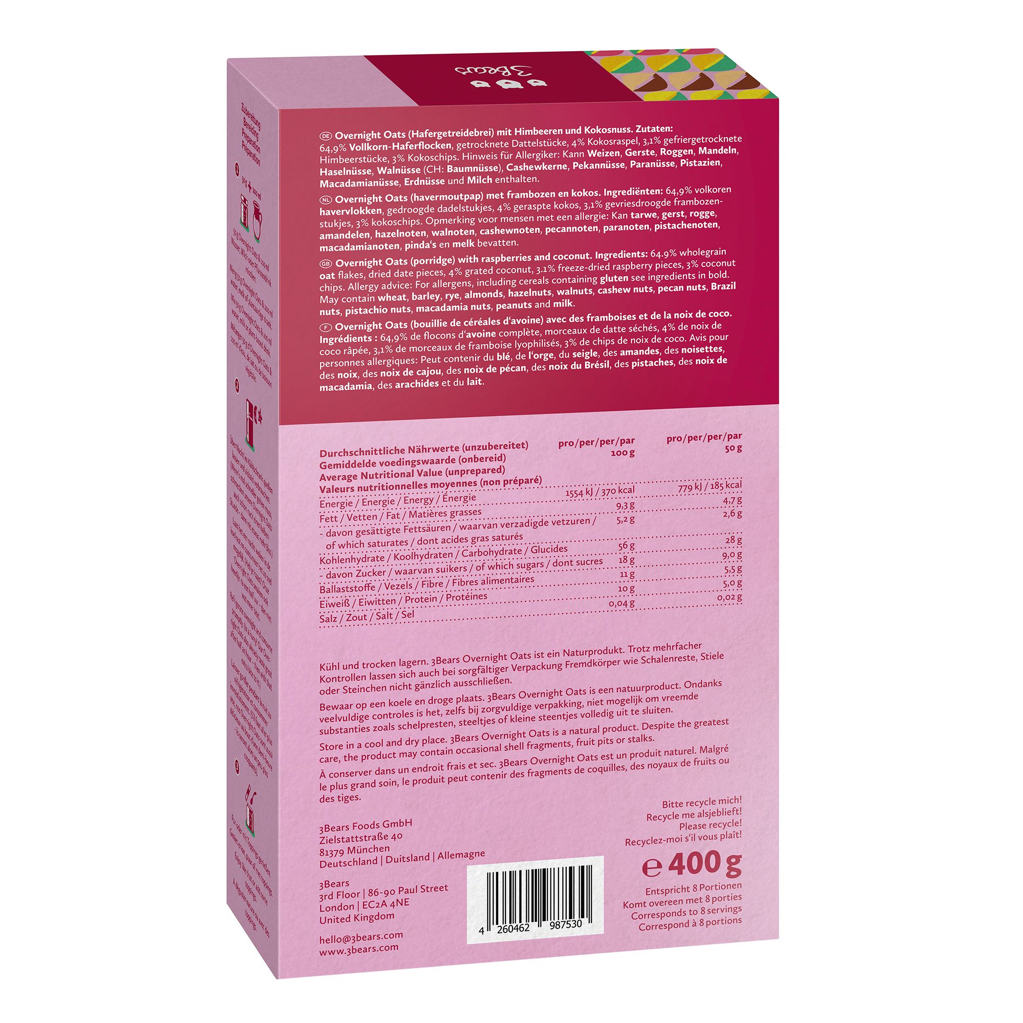 - 2 x Kokos Himbeere Overnight Oats, je 400 g
