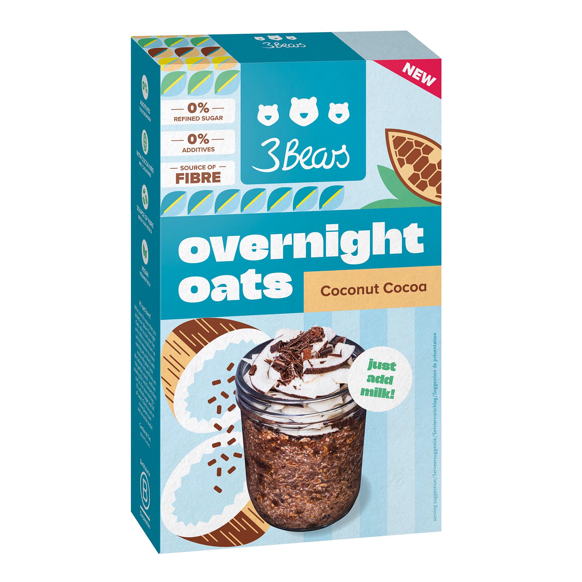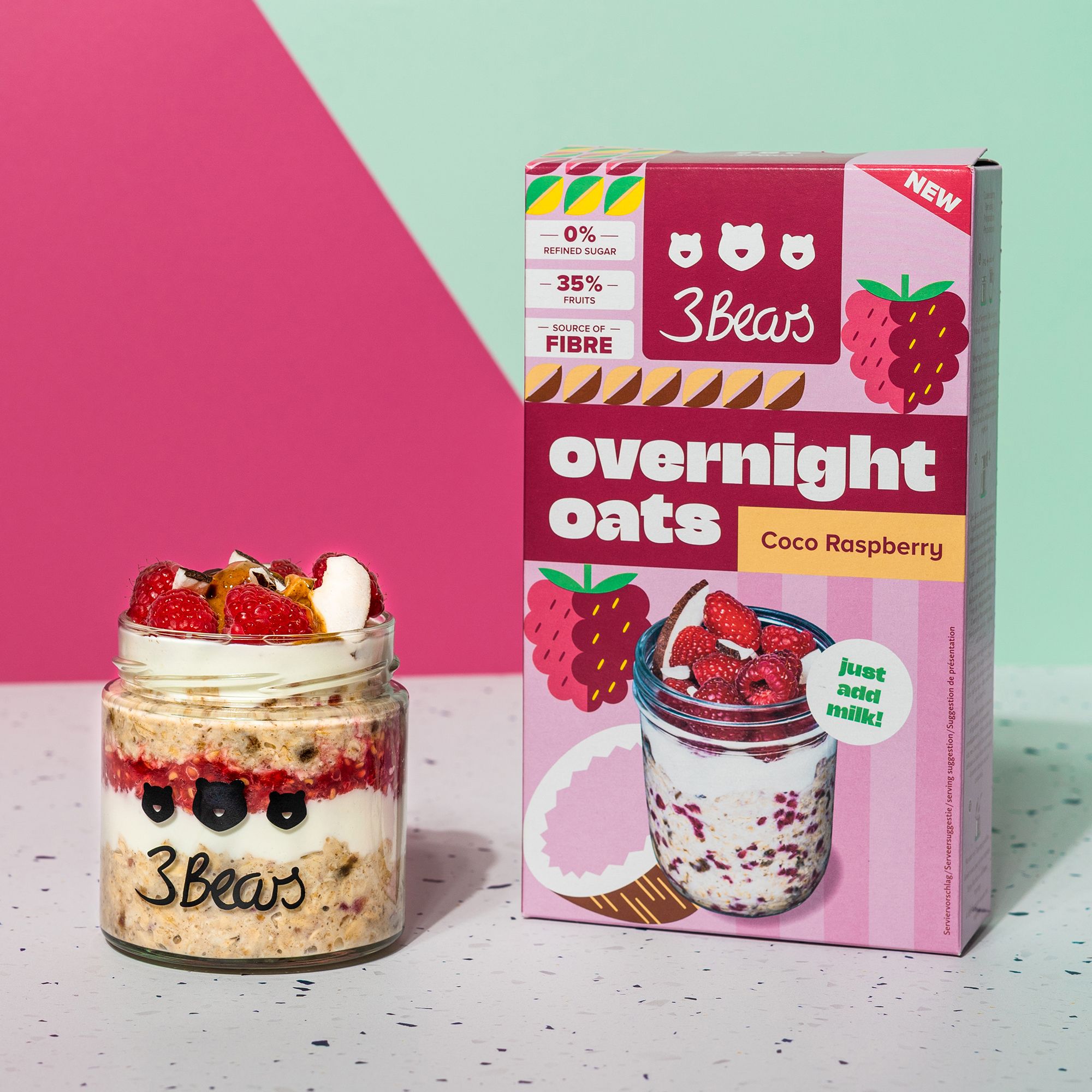 Nie wieder Langeweile beim Frühstück! Mit den drei abwechslungsreichen Sorten Overnight Oats von 3BEARS macht sich dein Frühstück im Kühlschrank wie von selbst über Nacht.