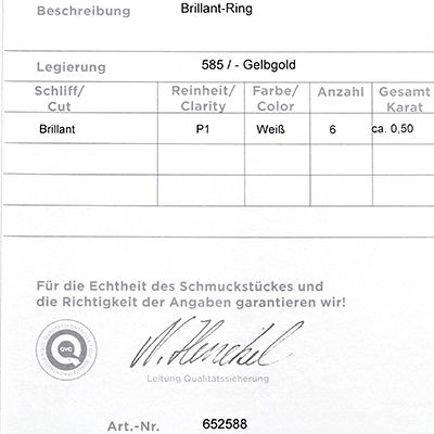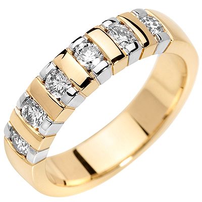 Dieser Ring ist aus 585er Gold gearbeitet und präsentiert auf seiner gleichbleibenden Ringschiene sechs weiße Brillanten in Channelfassung. Ein atemberaubendes Schmuckstück für gehobene Anlässe. Details