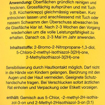 Klare Sicht ohne Scheibenwischer? Das wird möglich mit dem AUTO-GLOSS 707 Regenabweiser. Er reduziert Neuverschmutzungen, verhindert die Haftung von Insekten und Eis. Anwendung: Die Oberflächen gründlich reinigen und trocknen. Das Mittel großflächig aufsprühen und mit einem Tuch gleichmäßig verreiben. Kurz antrocknen lassen, anschließend mit einem nassen Schwamm den Überschuss abwischen bis die Glasfläche klar ist. Nach etwa zwei bis drei Wochen den Vorgang wiederholen, um die volle Leistungsfähigkeit zu erhalten. Danach wird eine Anwendung etwa zwei bis drei Mal im Jahr empfohlen. Inhalt: 4 x 250 ml Regenabweiser und ein Schwamm.