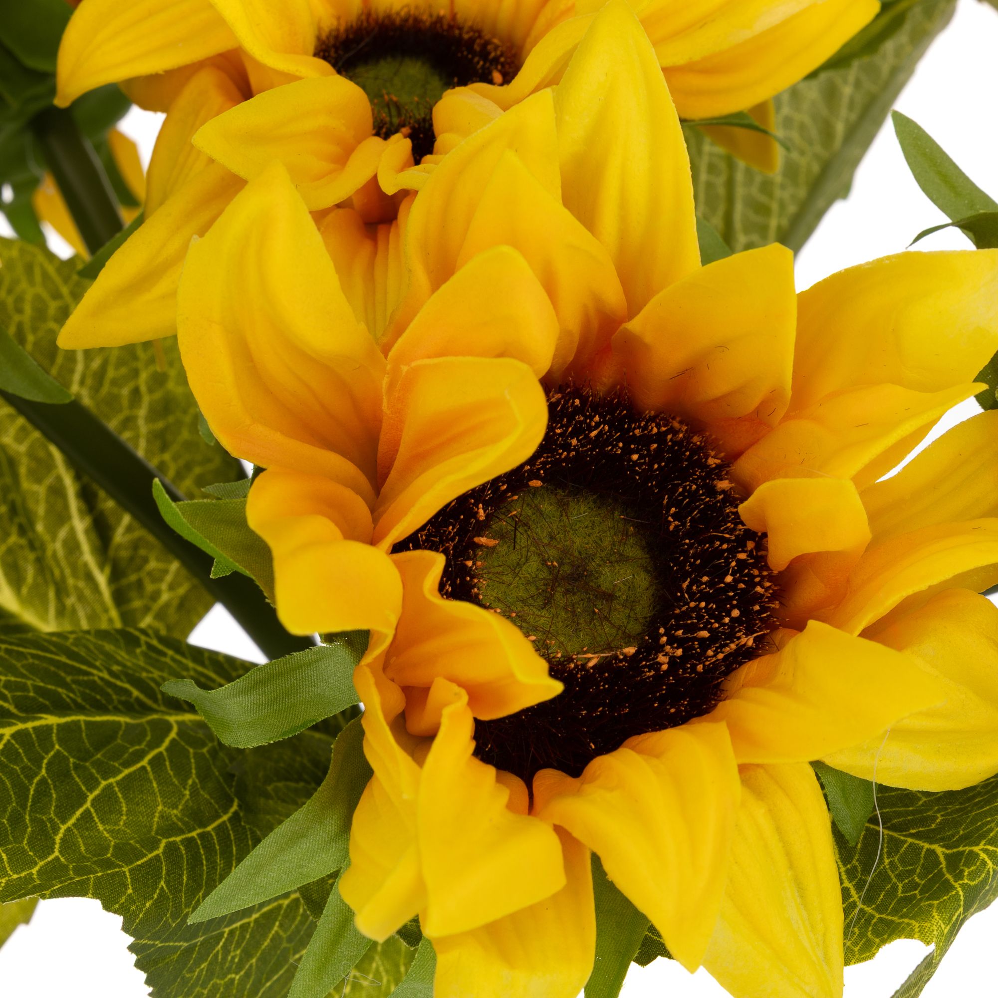 Diese Prachtdeko von ABELLA FLora verwandelt jeden Raum in eine Sommeroase! Leuchtend gelbe Sonnenblumenblüten – echten detailgetreu nachempfunden – ziehen magisch Blicke an und heben die Stimmung jedes Betrachters.