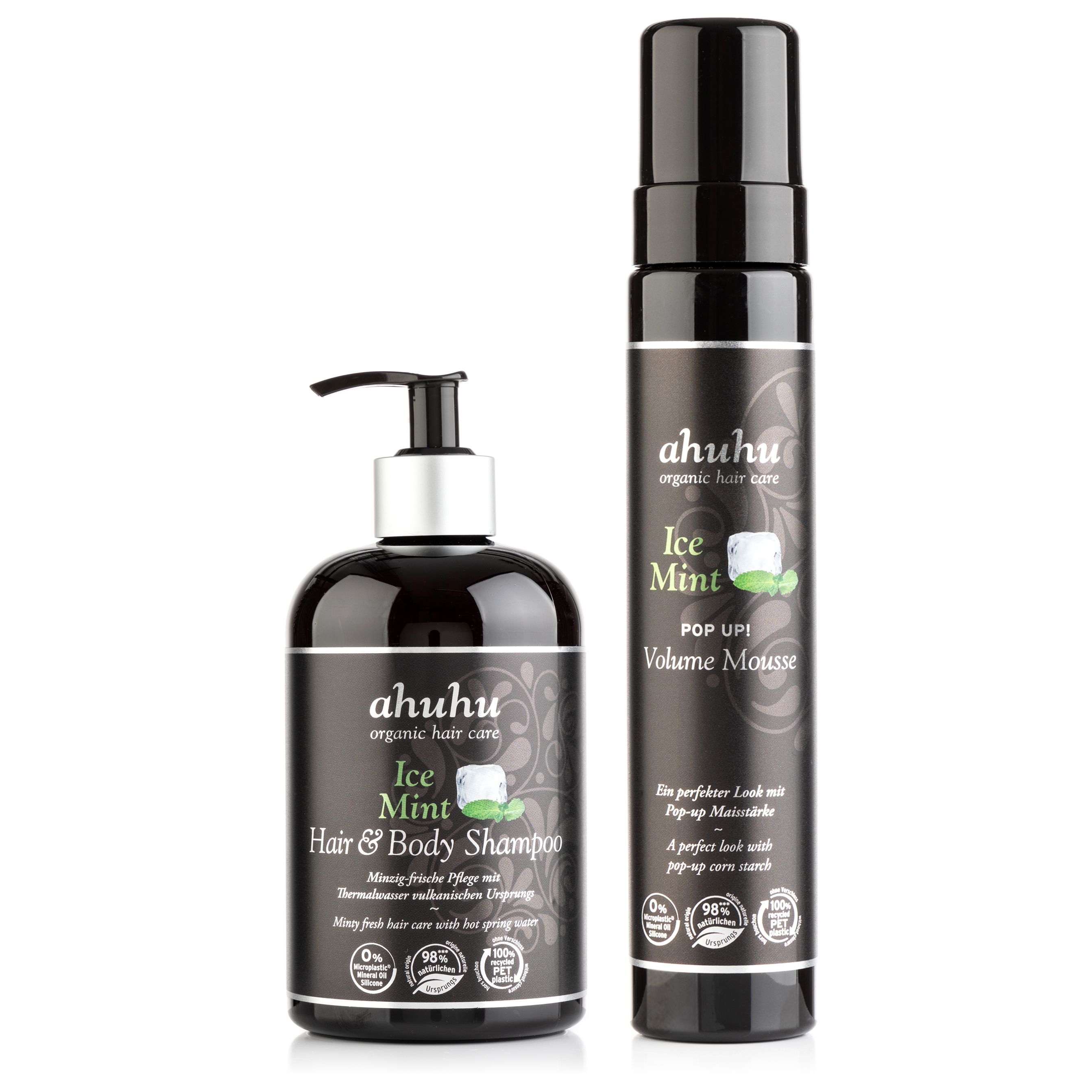 Pflege und Styling aus einer Hand: Das ahuhu organic hair care Ice Mint Set ist ein wahres Allround-Talent für traumhafte Haare und ein wahrer Frische-Kick!