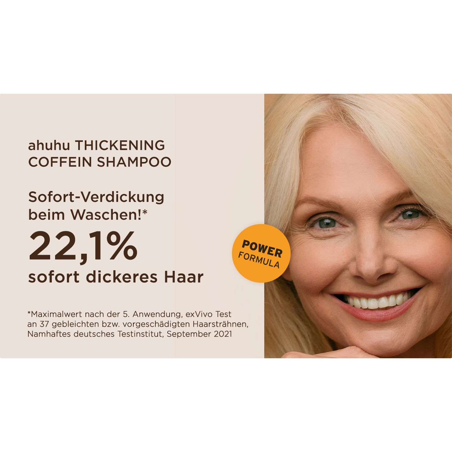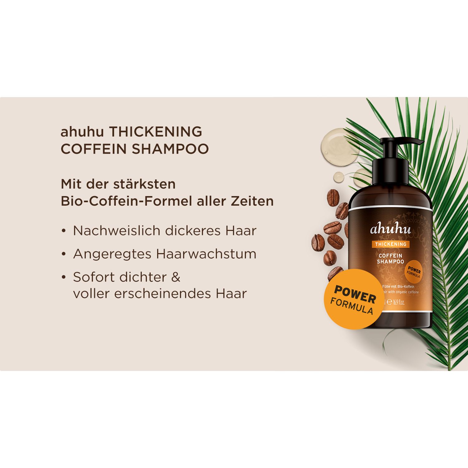 Frische auf der Kopfhaut und im Haar: Das ahuhu Thickening Coffein Shampoo Power Formula ist unsere stärkste Formulierung mit Bio-Coffein und erfrischendem Menthol.