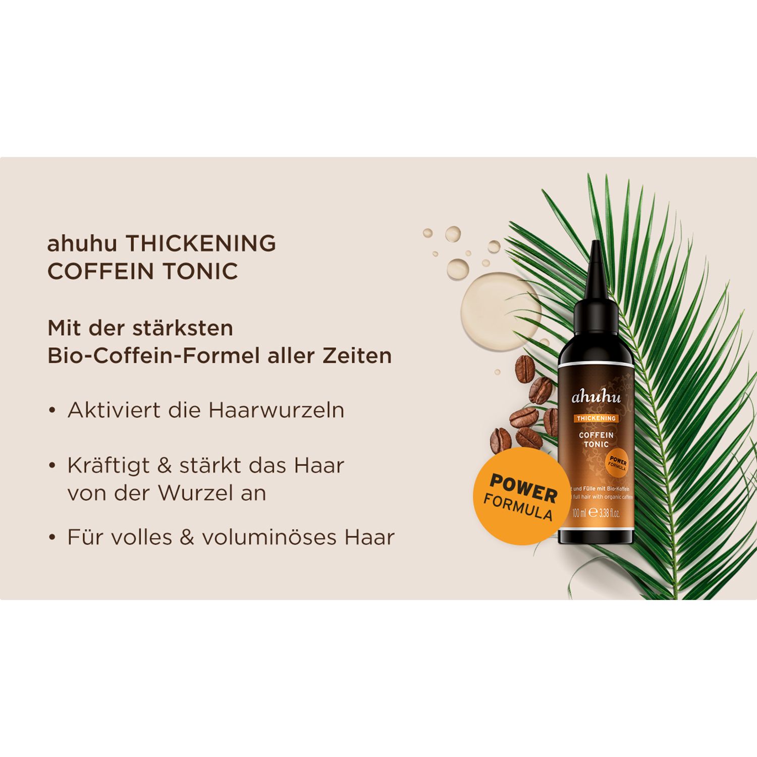 Lust auf fühlbar dickeres und optisch voluminöseres Haar? Das Thickening Coffein Tonic Power Formula ist die stärkste Formulierung von ahuhu – mit Bio-Coffein und erfrischendem Menthol. Ein wohltuend duftendes Aktivierungsprogramm für dein Haar.