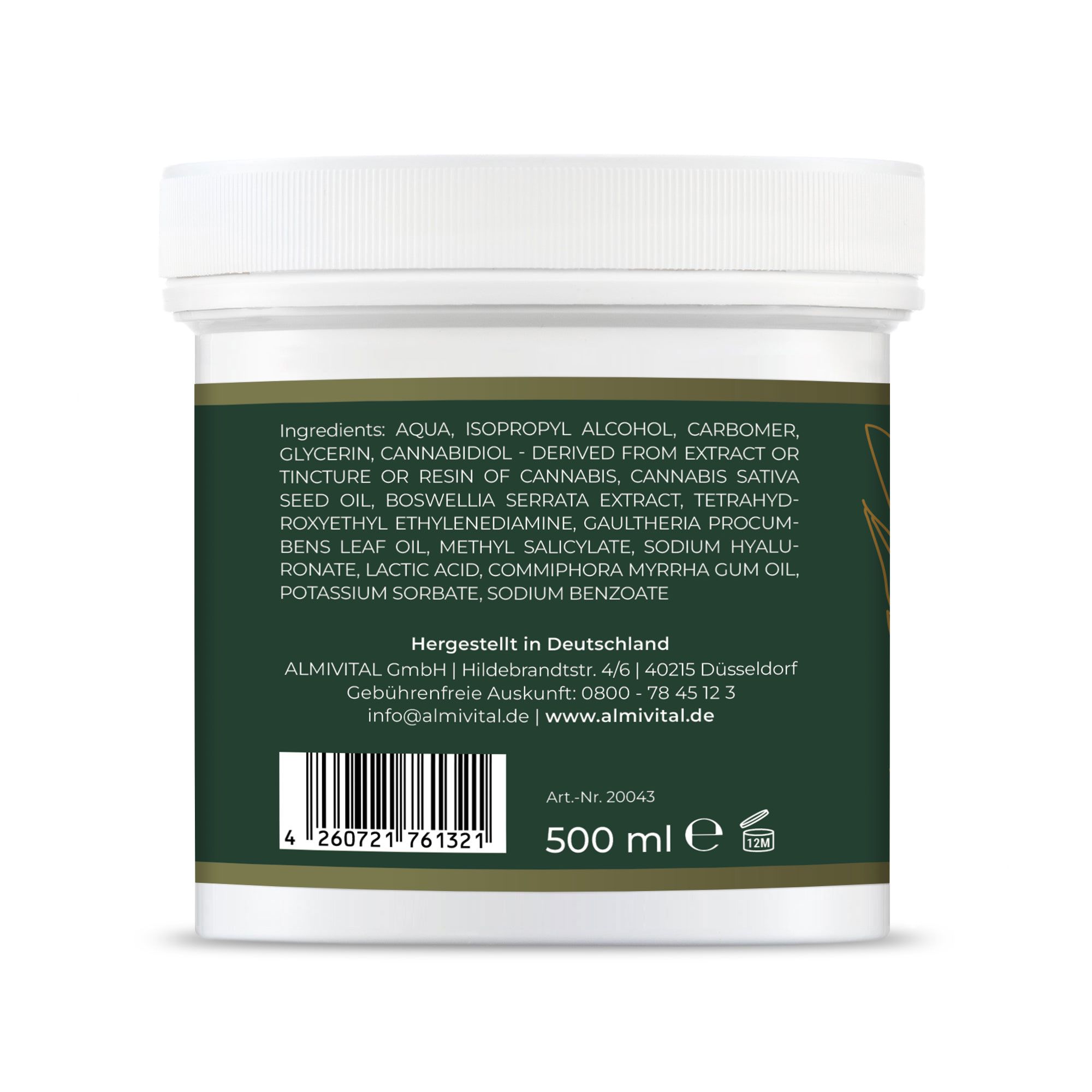 - Gelenkfit Gel Forte mit CBD Isolat, Hanföl,Weihrauchextrakt und Hyaluron, 500 ml