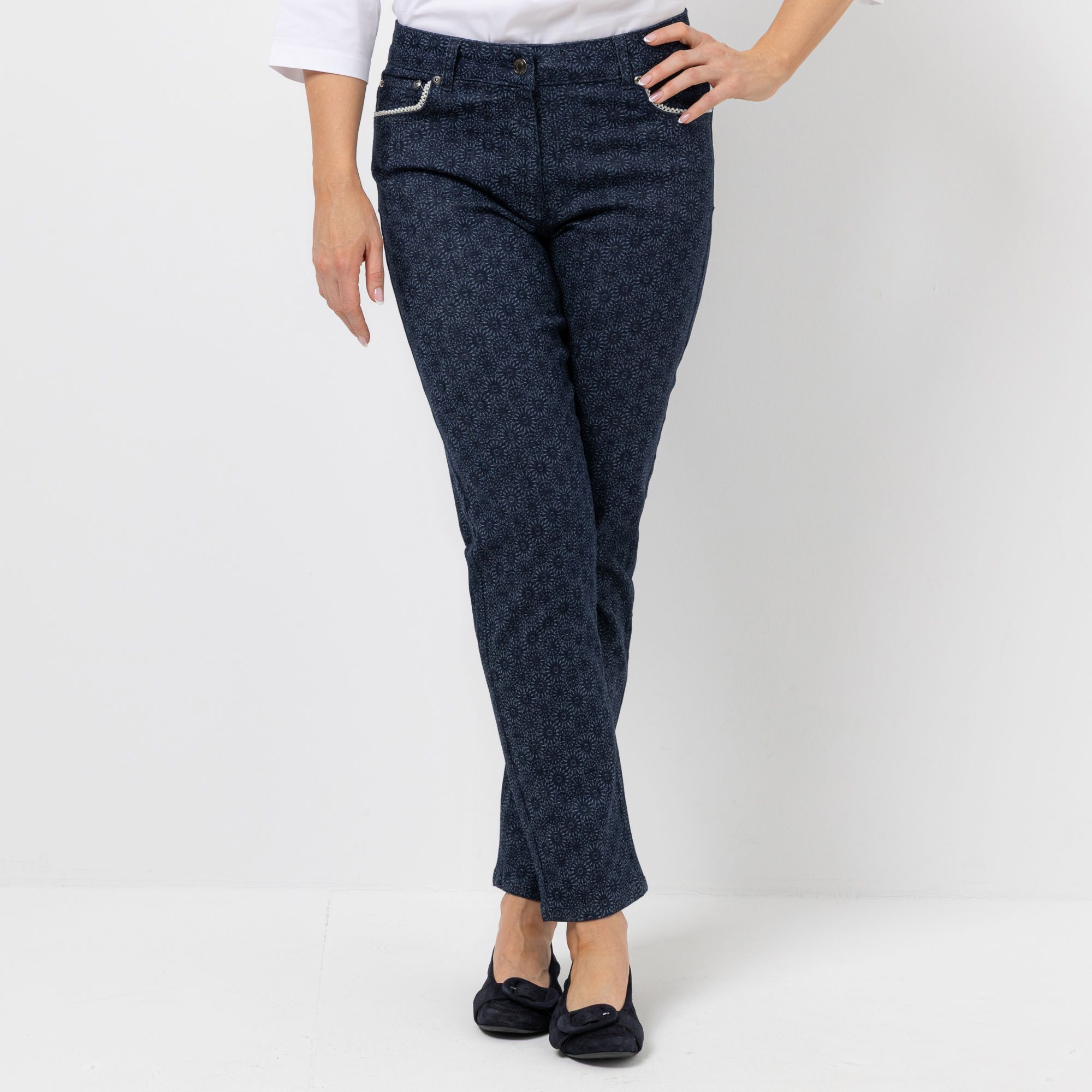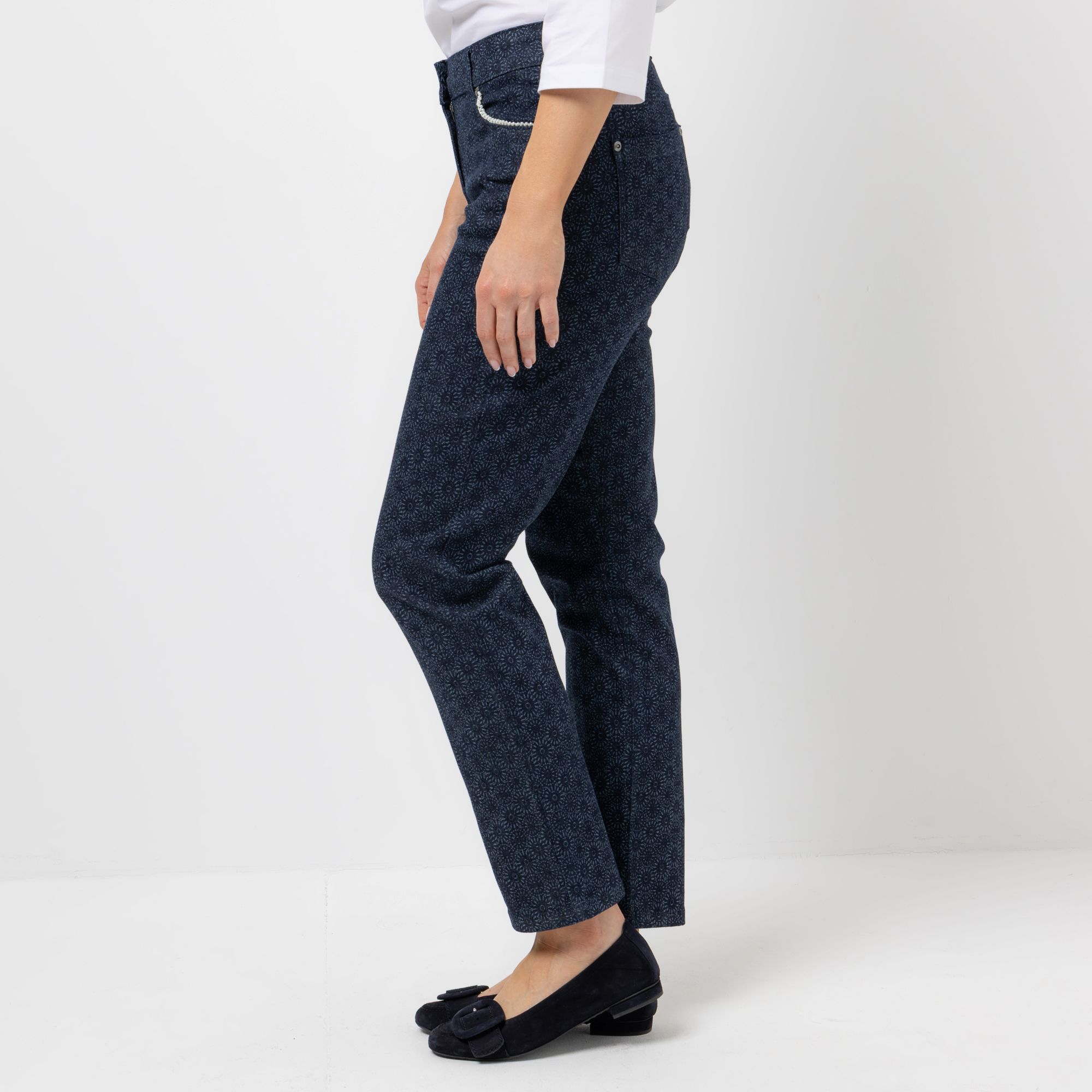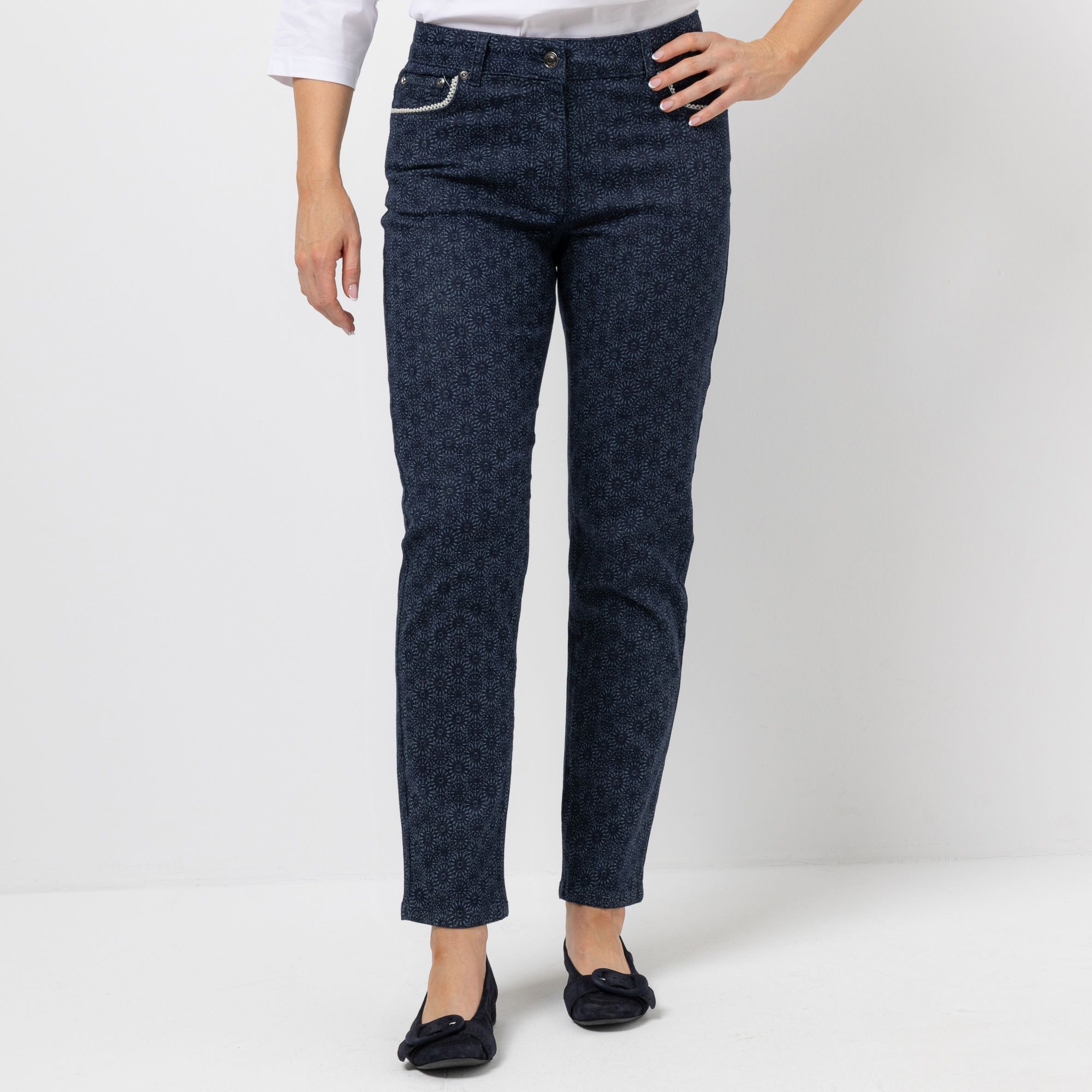 Chic Hose mit Print & Perlendekor