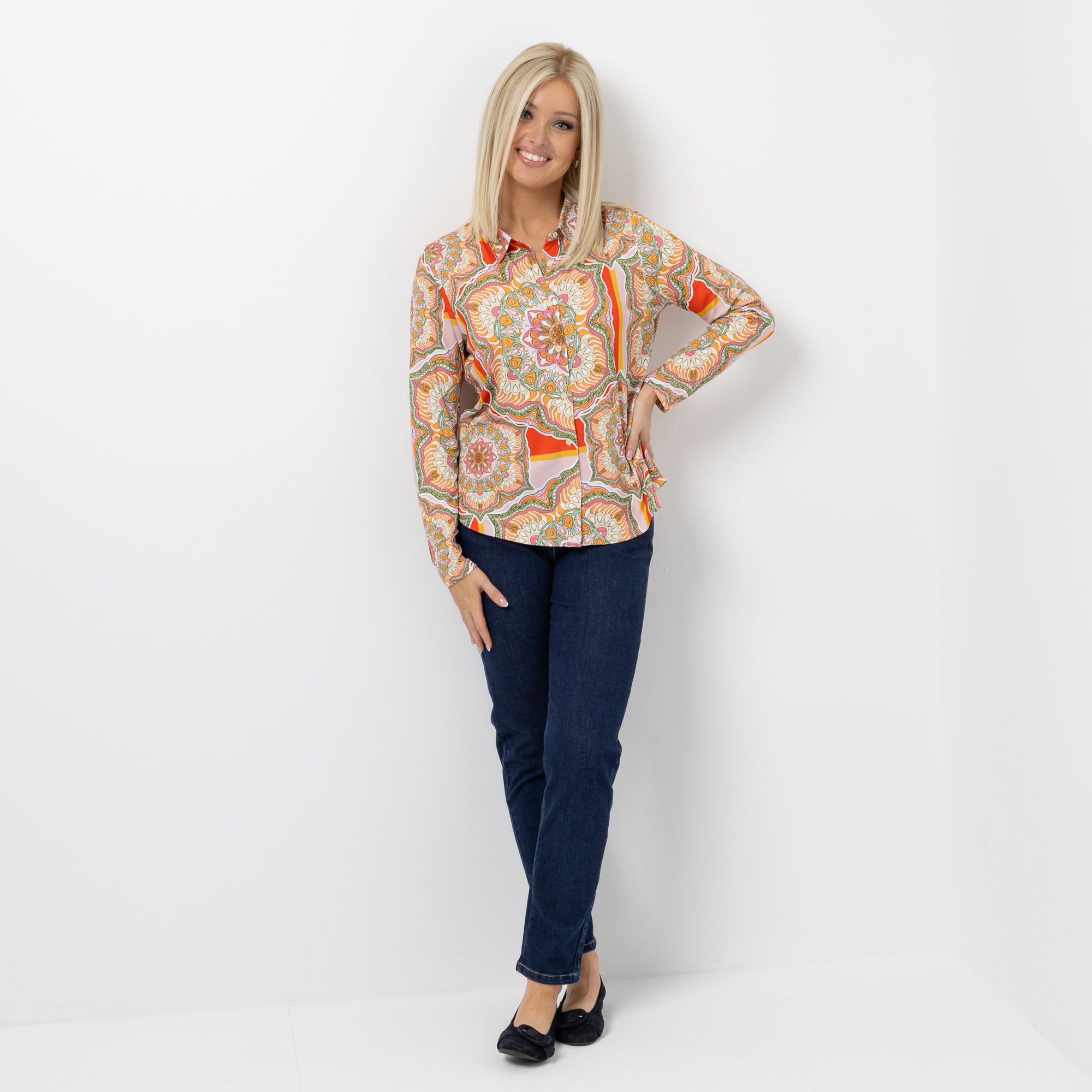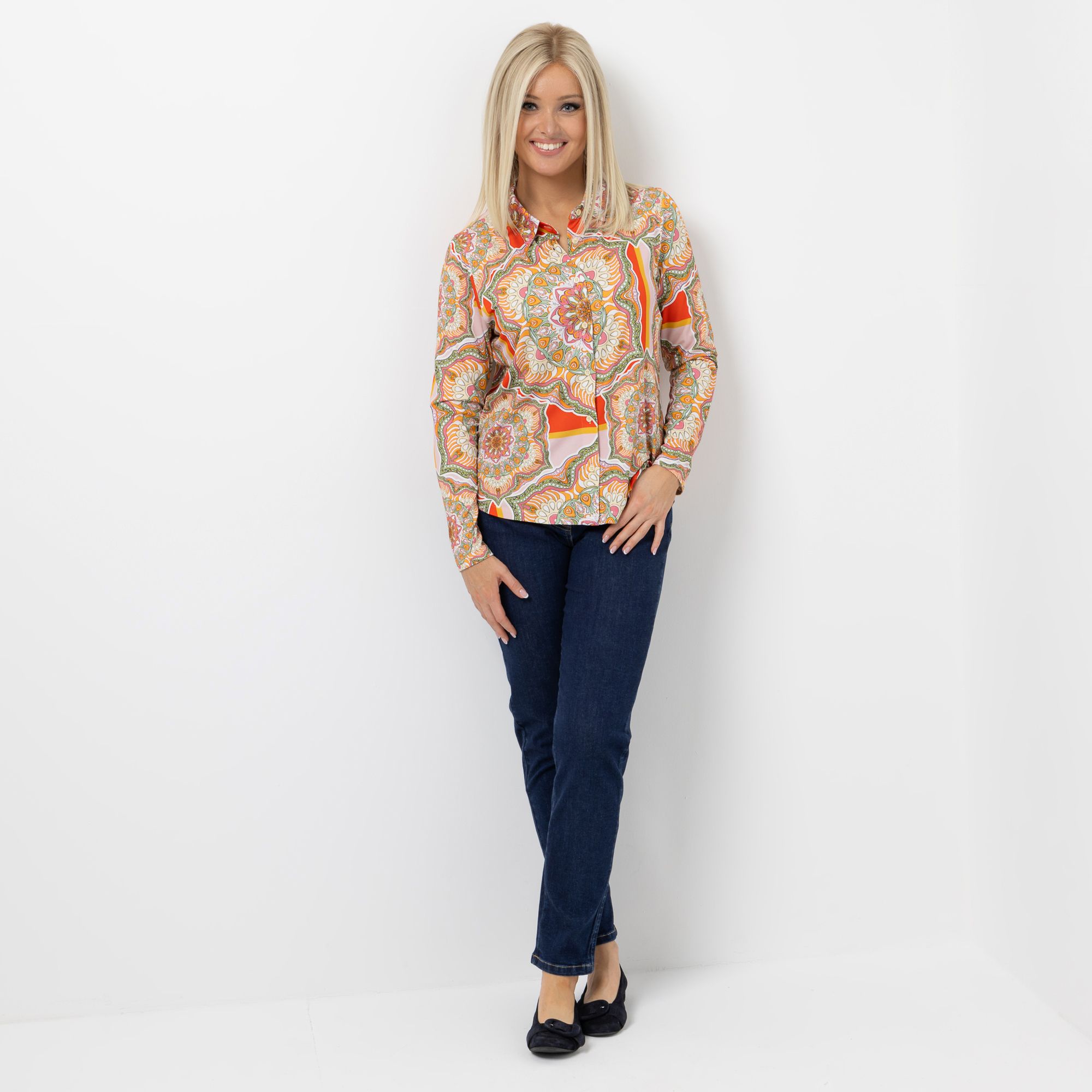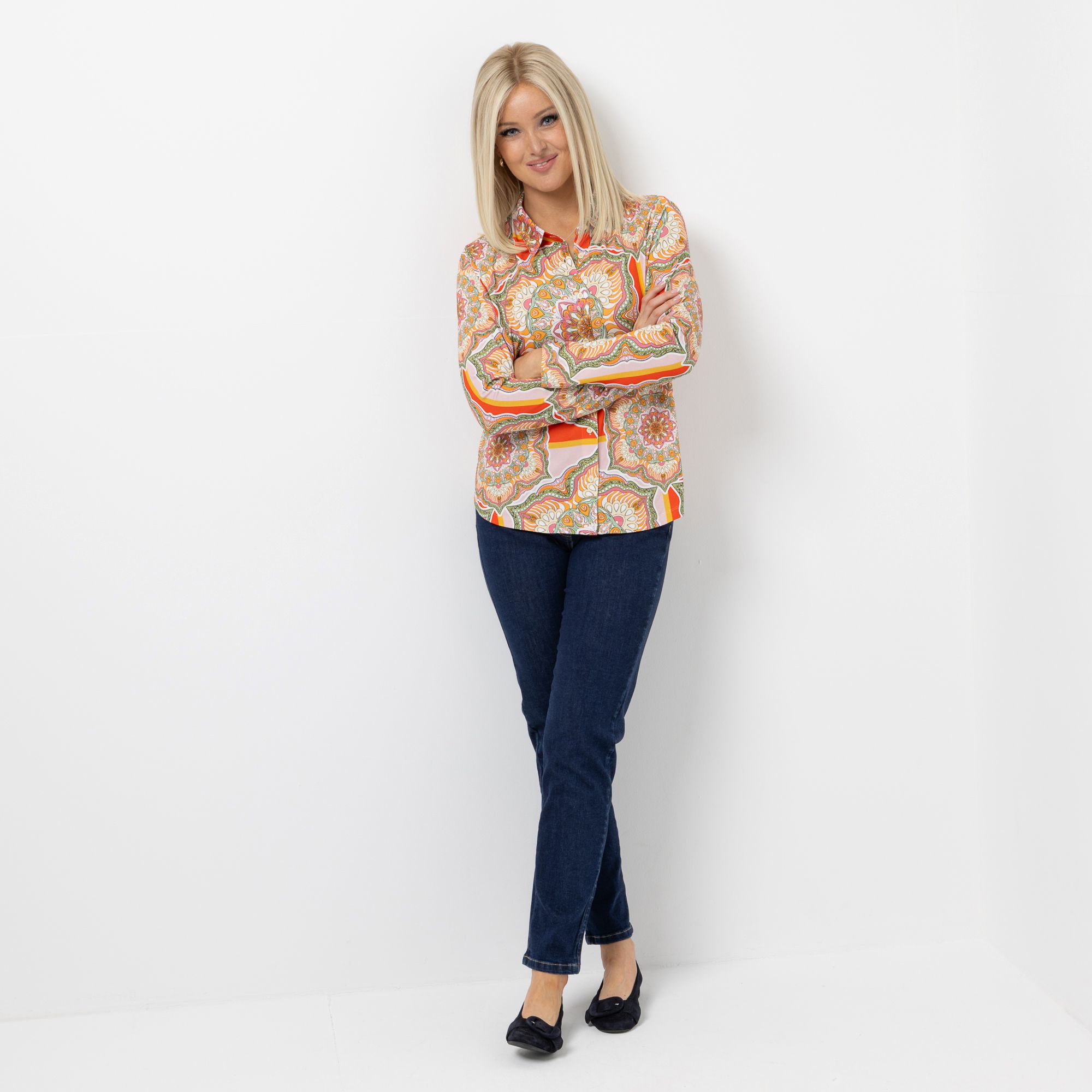AMINATI® Jerseybluse, Langarm Knopfleiste Allover-Druck mit ECOVERO Viskose