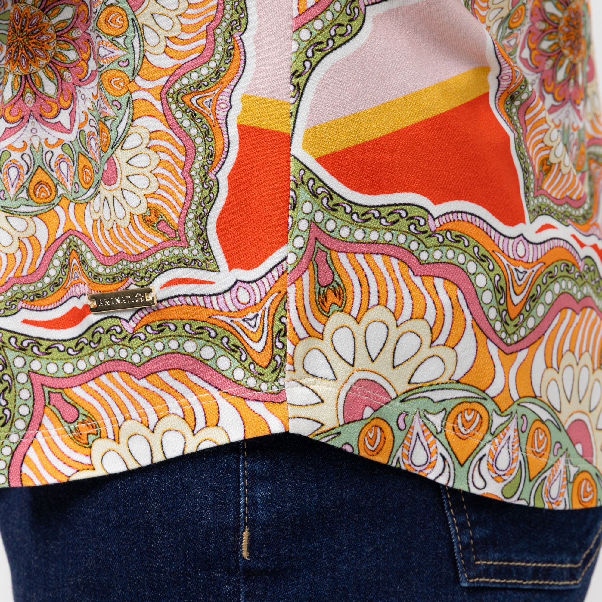 Betont weiblich umspielt die weiche AMINATI® Jerseybluse deine Silhouette. Ihr elastisches Material mit hohem Viskoseanteil liegt angenehm auf der Haut und gibt dir Bewegungsfreiheit. Durch ihren Druck verleiht sie jedem Outfit das gewisse Etwas, um in Erinnerung zu bleiben.