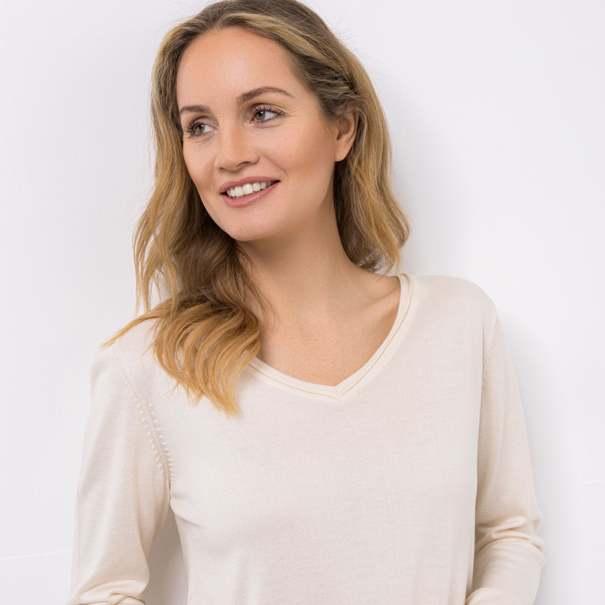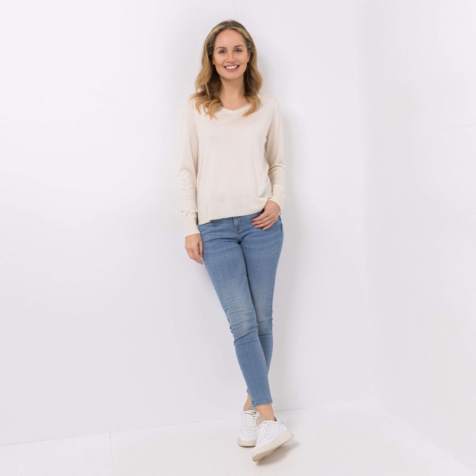 AMINATI® Pullover, 1/1-Arm V-Ausschnitt Seitenschlitze figurumspielend