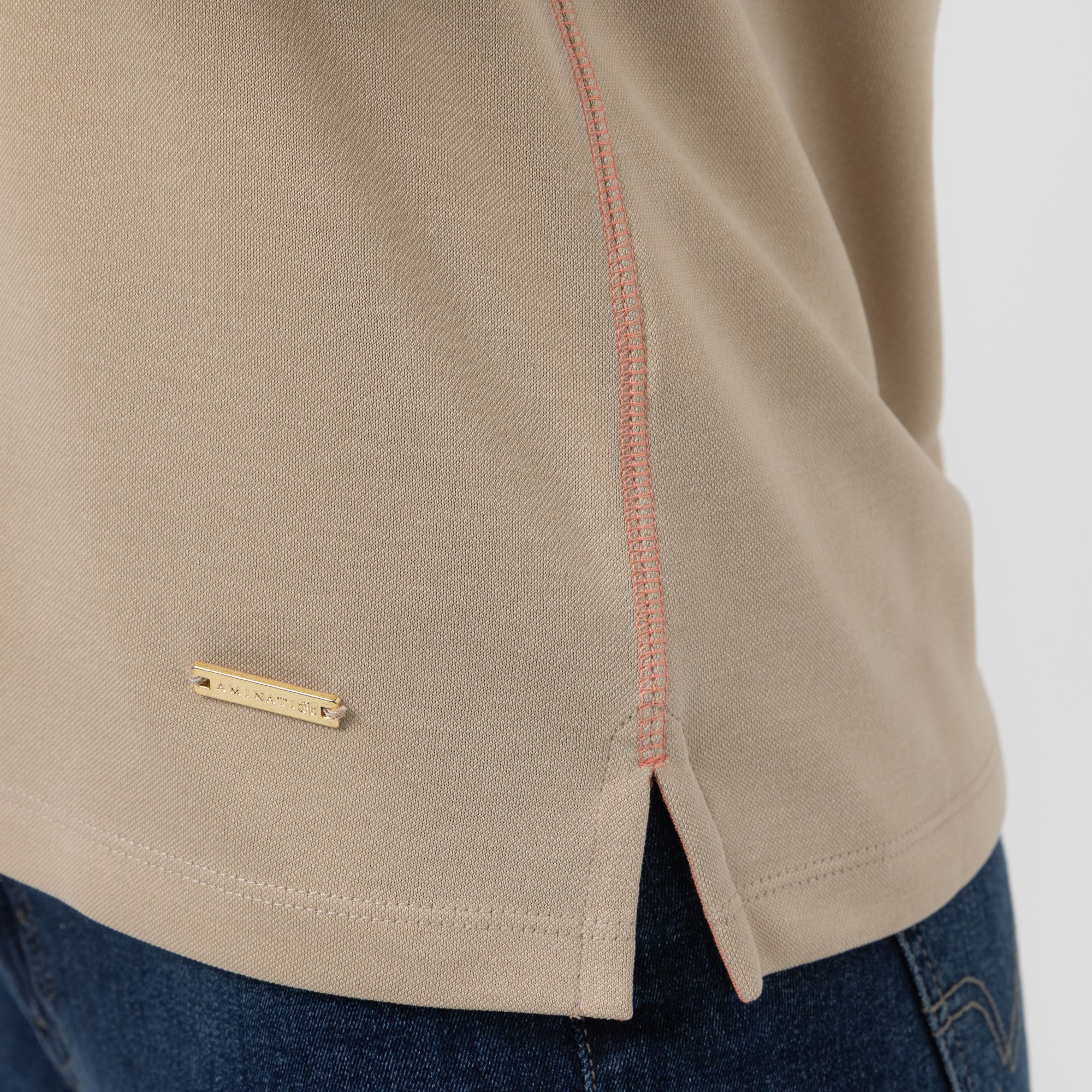 AMINATI® Shirt, 3/4-Arm U-Boot Ausschnitt Seitenschlitze Logo-Details