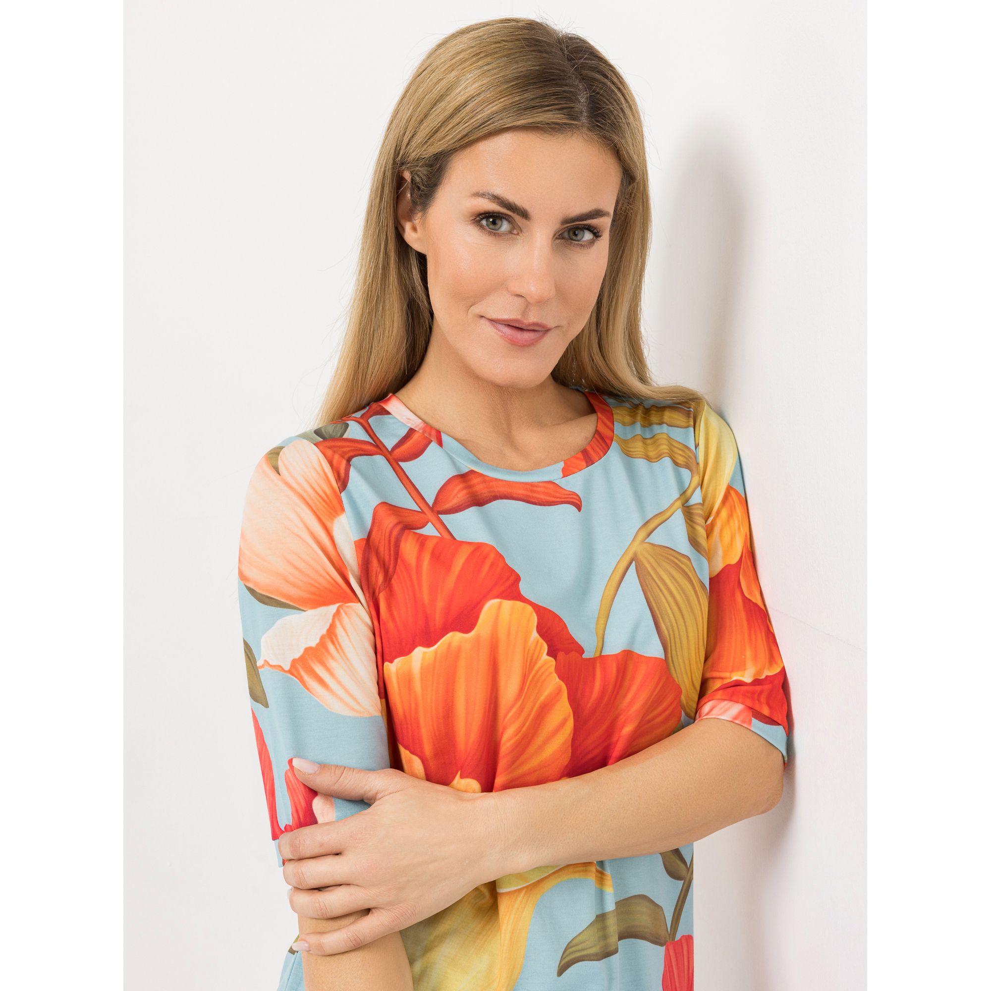 AMINATI® Shirt, langer 1/2-Arm Rundhalsausschnitt Allover Druck figurumspielend