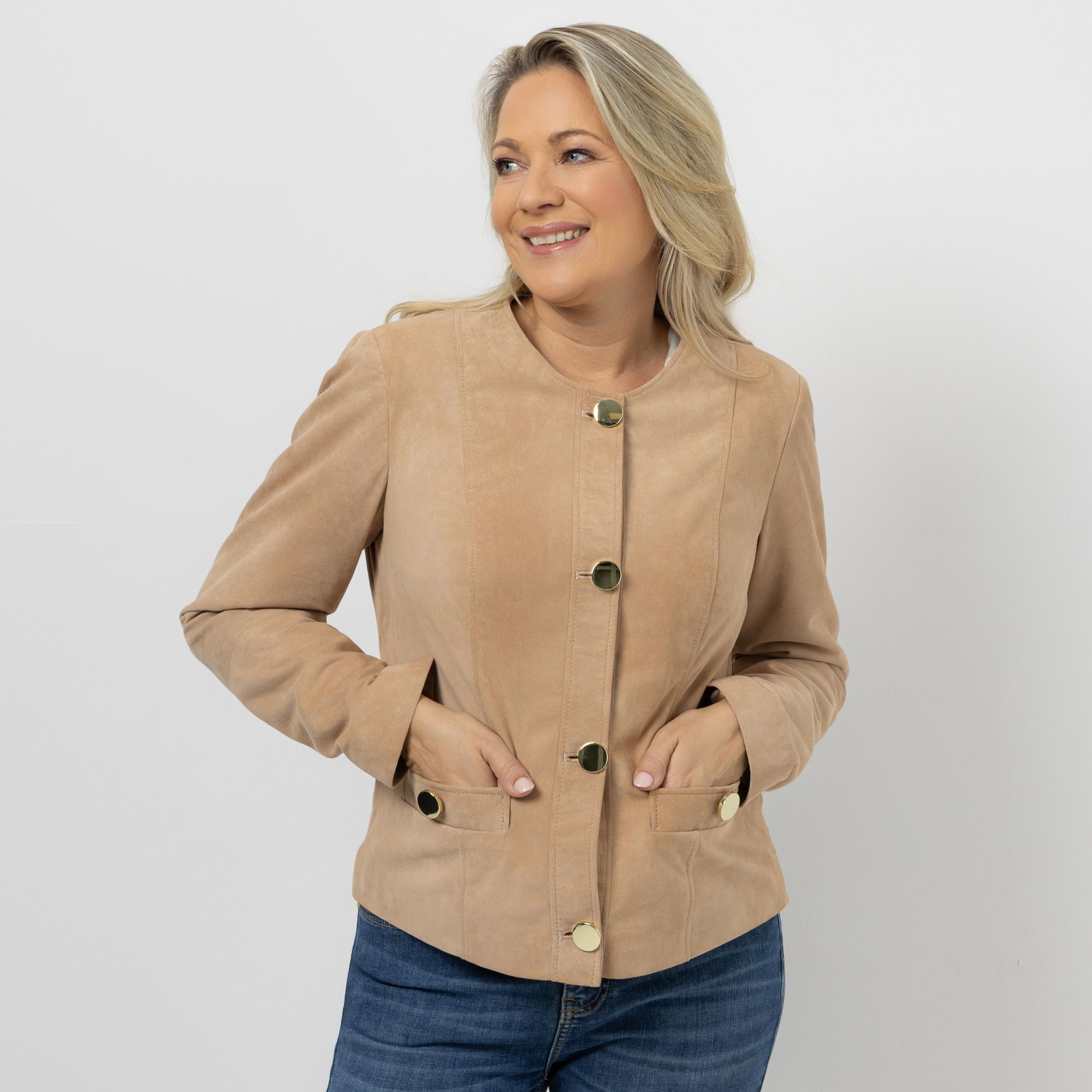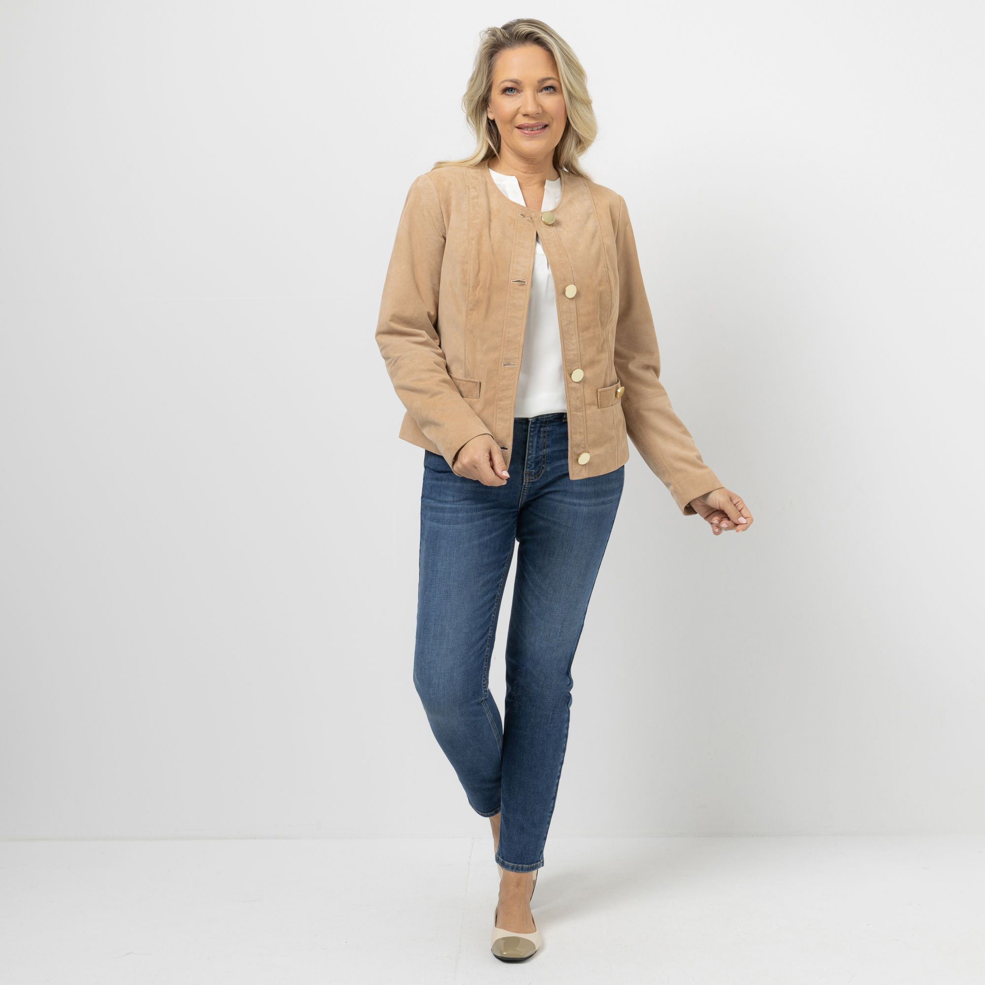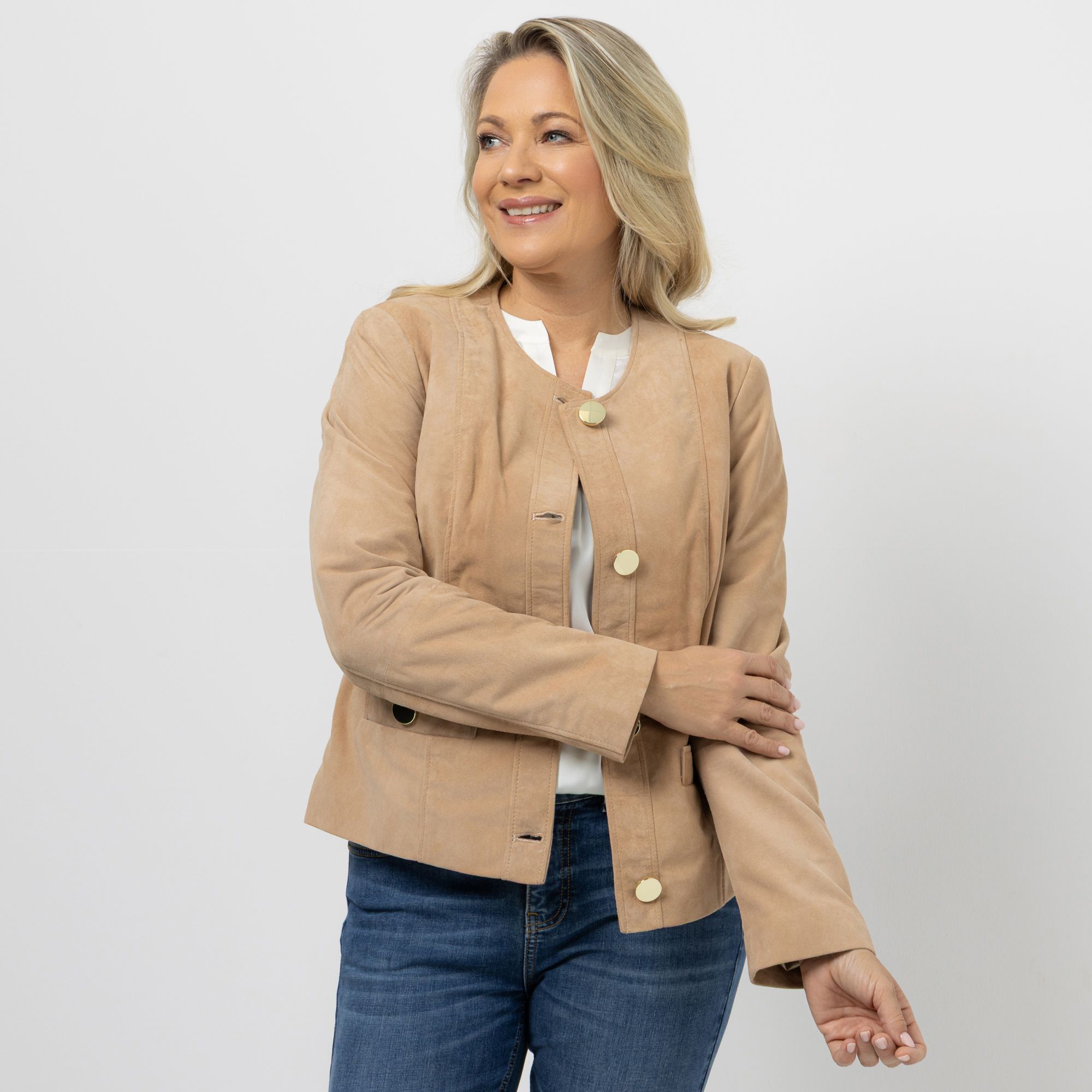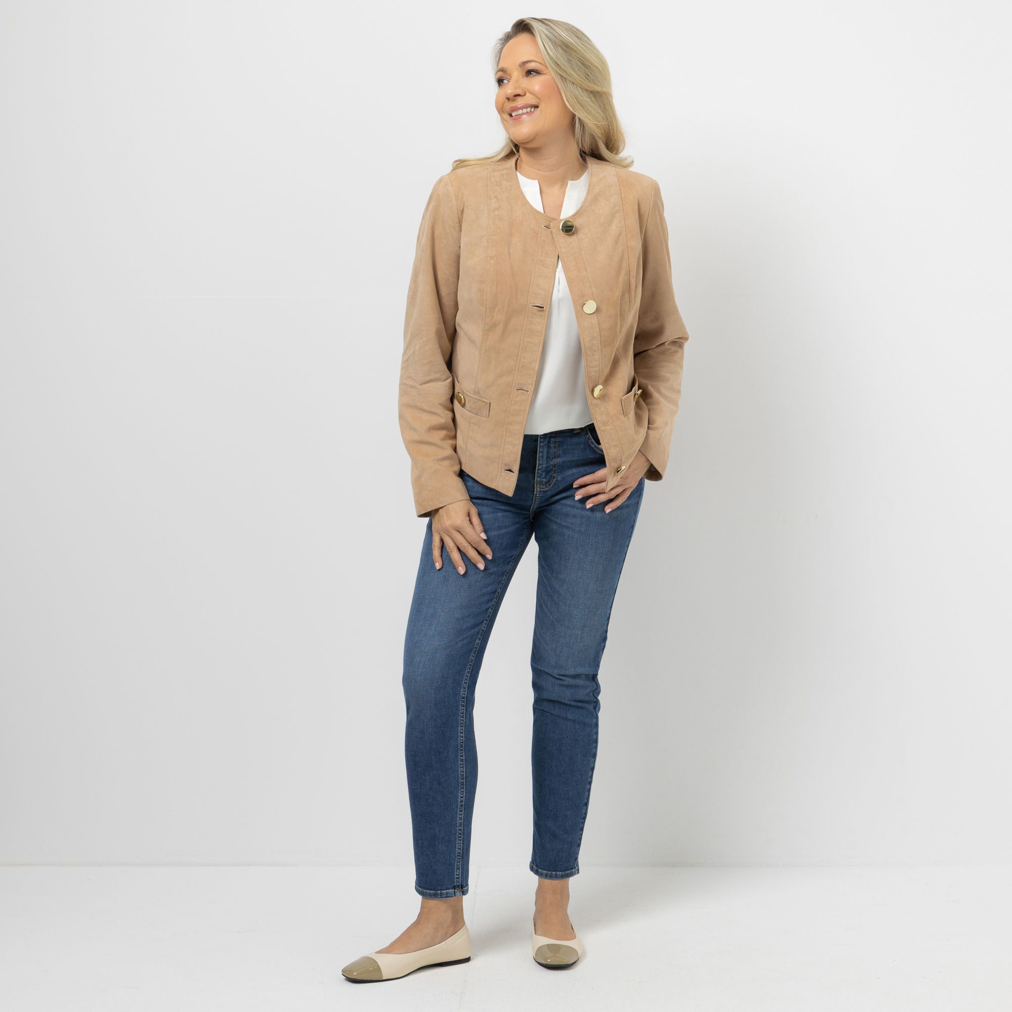 ANNA VON GRIESHEIM Lederjacke Veloursleder Knopfleiste figurbetont