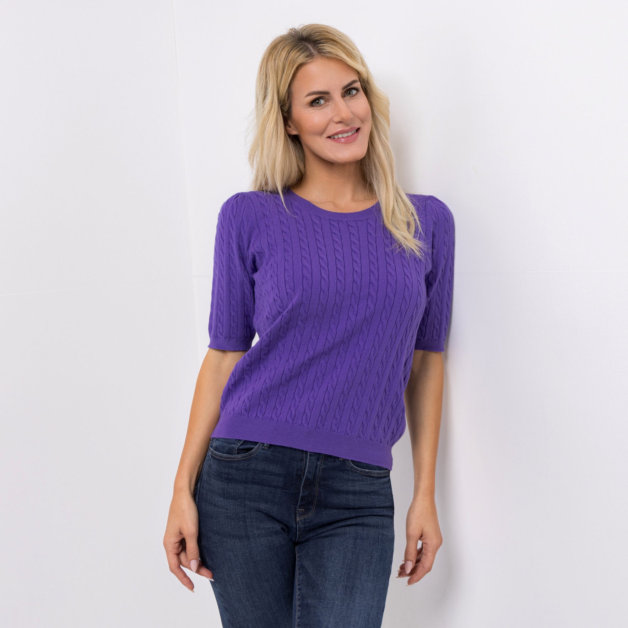ANNI FOR FRIENDS Pullover, 1/2-Arm Rundhalsausschnitt Struktur-Strick figurbetont