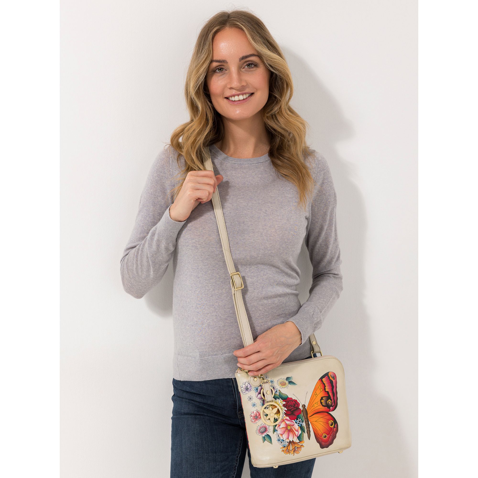ANUSCHKA® Umhängetasche echt Leder RFID-Schutz handbemalt