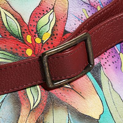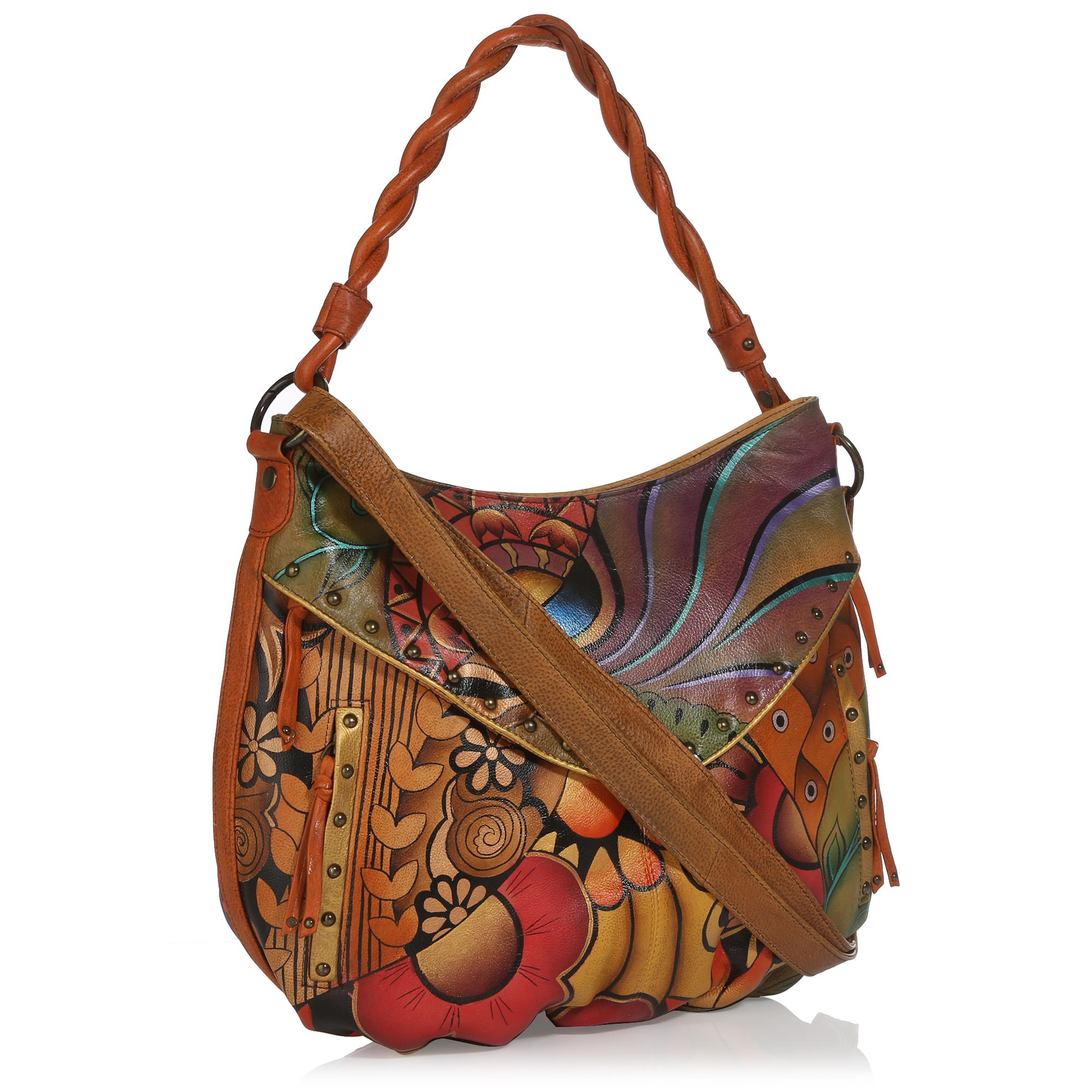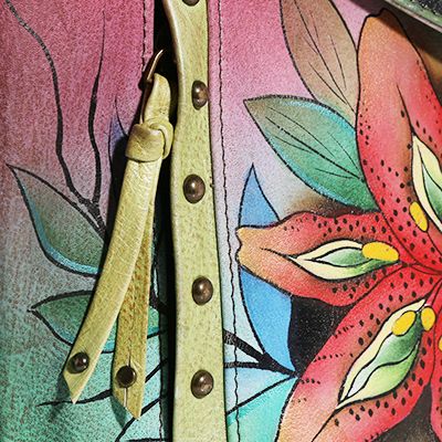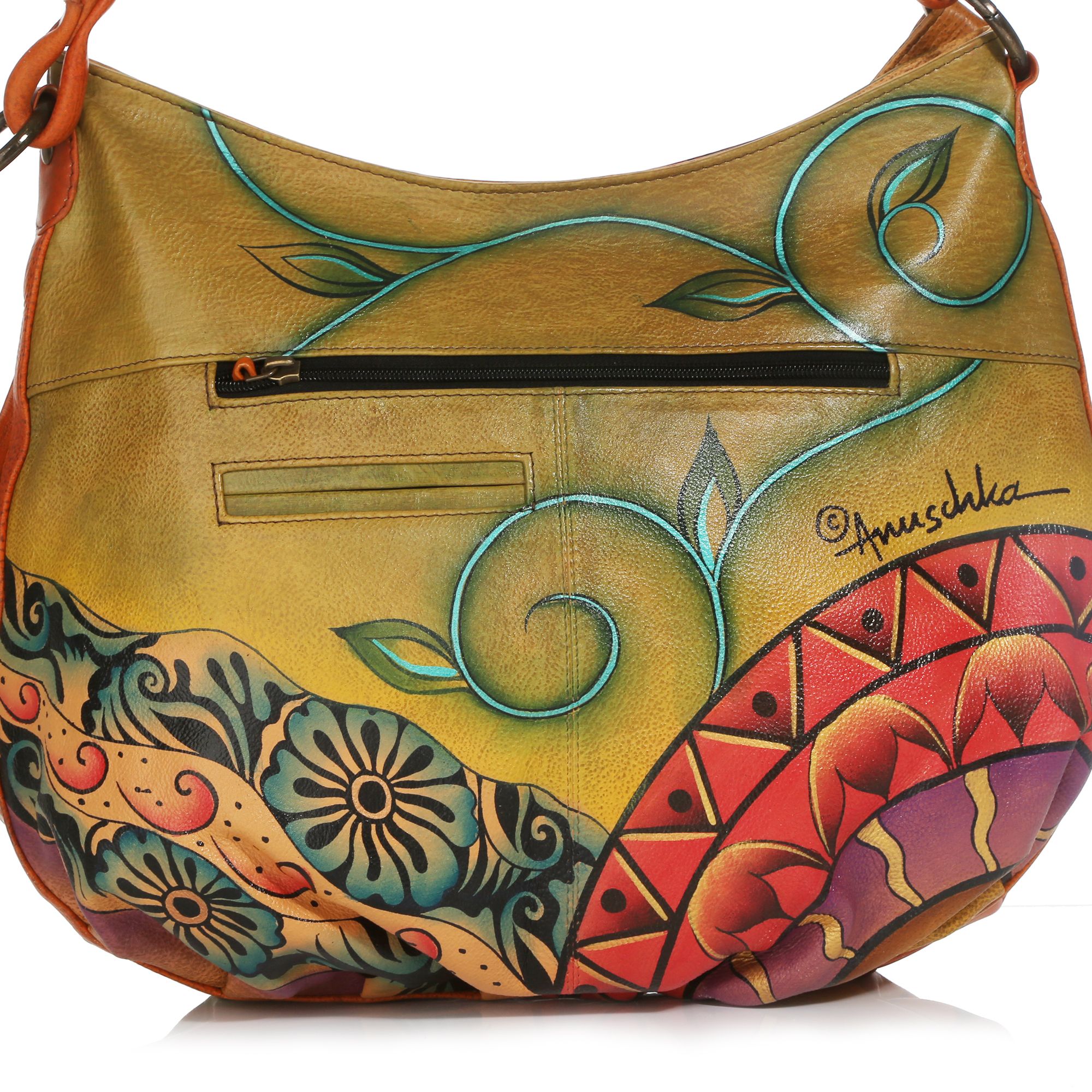 Sieht toll aus, passt viel rein! Der XXL-Shopper von ANUSCHKA ist aus handbemaltem echtem Leder gearbeitet und mit schicken Ziernieten ausgestattet. Der modisch gedrehte Henkel verleiht der Tasche einen feinen südländischen Flair.