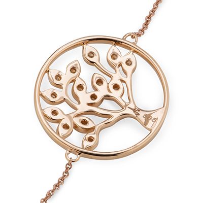 Atemberaubend präsentiert sich das Armband aus der ARGYLE Schmuckkollektion am Handgelenk: 14 Diamanten in hellen Brauntönen, umrahmt von poliertem 585er Roségold, machen das Accessoire zum romantischen Eyecatcher. Ein zartes Baum-Element gibt dem Schmuckstück einen originellen Charme.