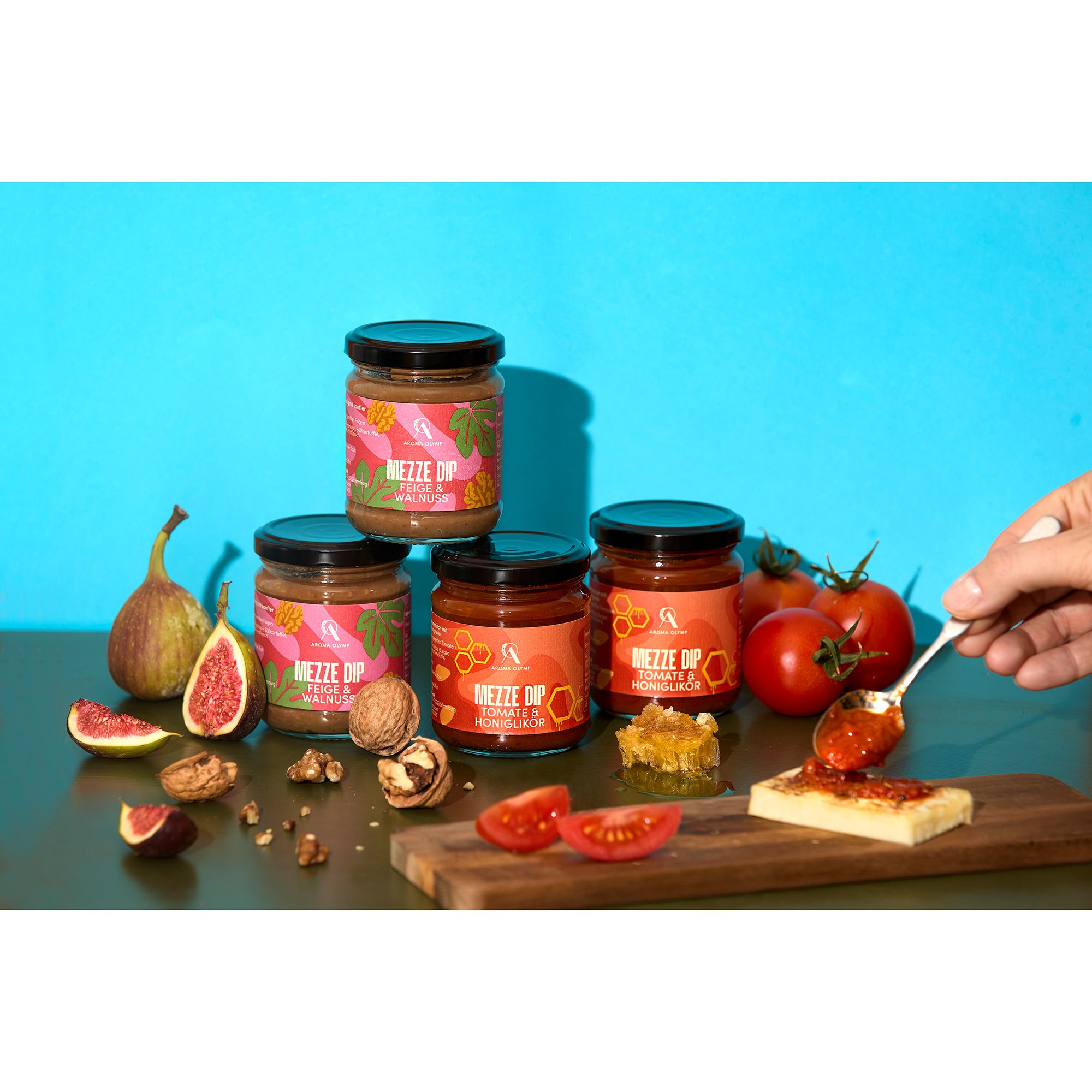 Perfekt für deine aromatische Vorspeisenplatte: Entdecke die kulinarische Vielfalt mit den raffinierten Mezze Dips von AROMA OLYMP, die mit hochwertigen Zutaten überzeugen.