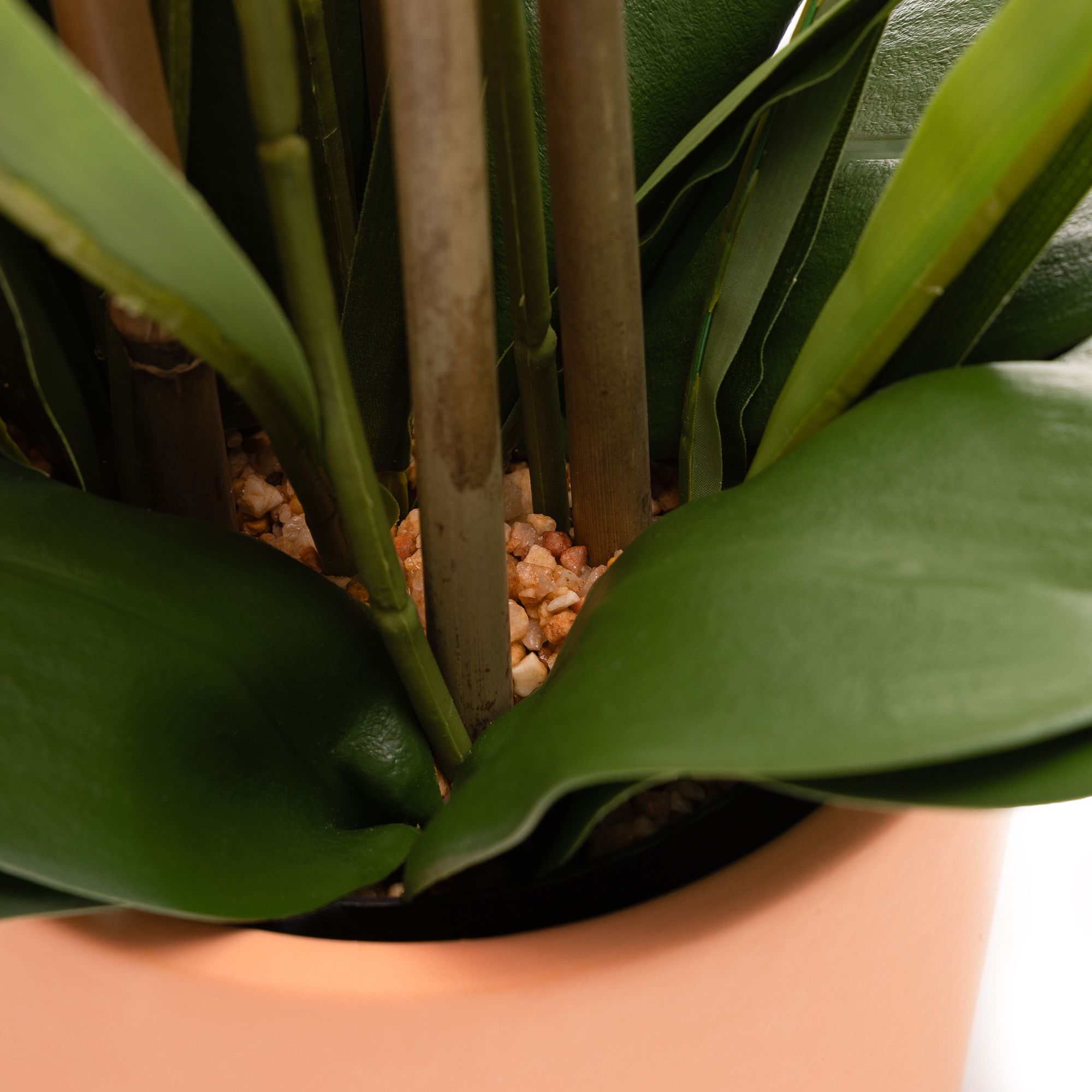 Die Blüten begeistern mit natürlicher Optik und Haptik. Sie sind detailgetreu nachgebildet und von einer echten Orchidee kaum zu unterscheiden. Unterstrichen wird die Pracht der Pflanze von dem farblich passenden Keramiktopf. Da sie aber nicht fest im Topf verankert ist, kannst du die Orchidee nach Lust und Laune umtopfen. Jetzt nur noch Lieblingsfarbe und Größe wählen und schon bald über einen blühenden Frischekick daheim freuen!