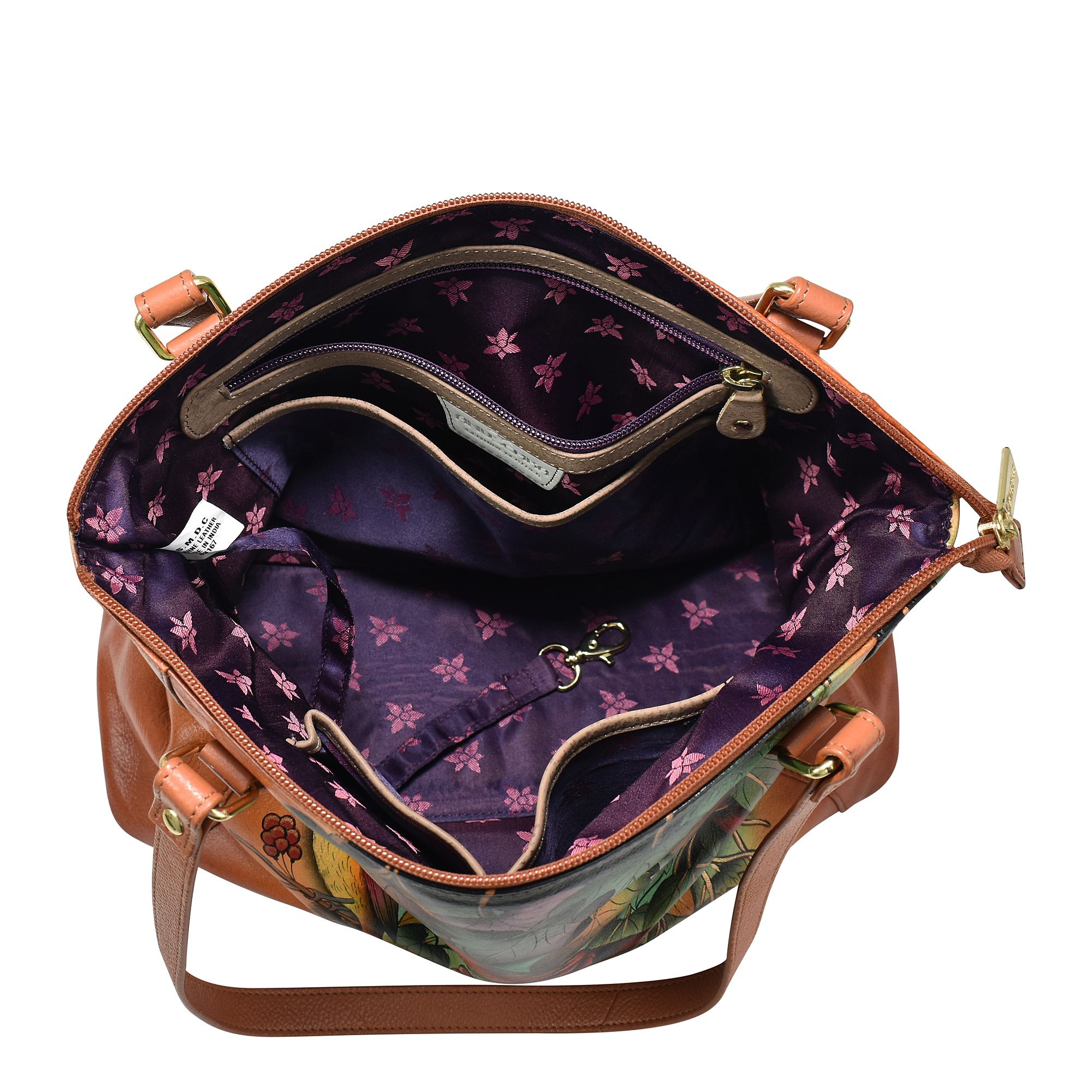 Verwende ein leicht feuchtes Tuch zur Reinigung. Verwende keine nicht zugelassenen chemischen Mittel, Lederschutzmittel oder Reinigungslösungen. Die Tasche ist mit ANUSCHKA Leather Protector Spray (silikonfrei, FCKW-frei) besprüht, um die satten Farben und die Geschmeidigkeit des Leders zu bewahren.