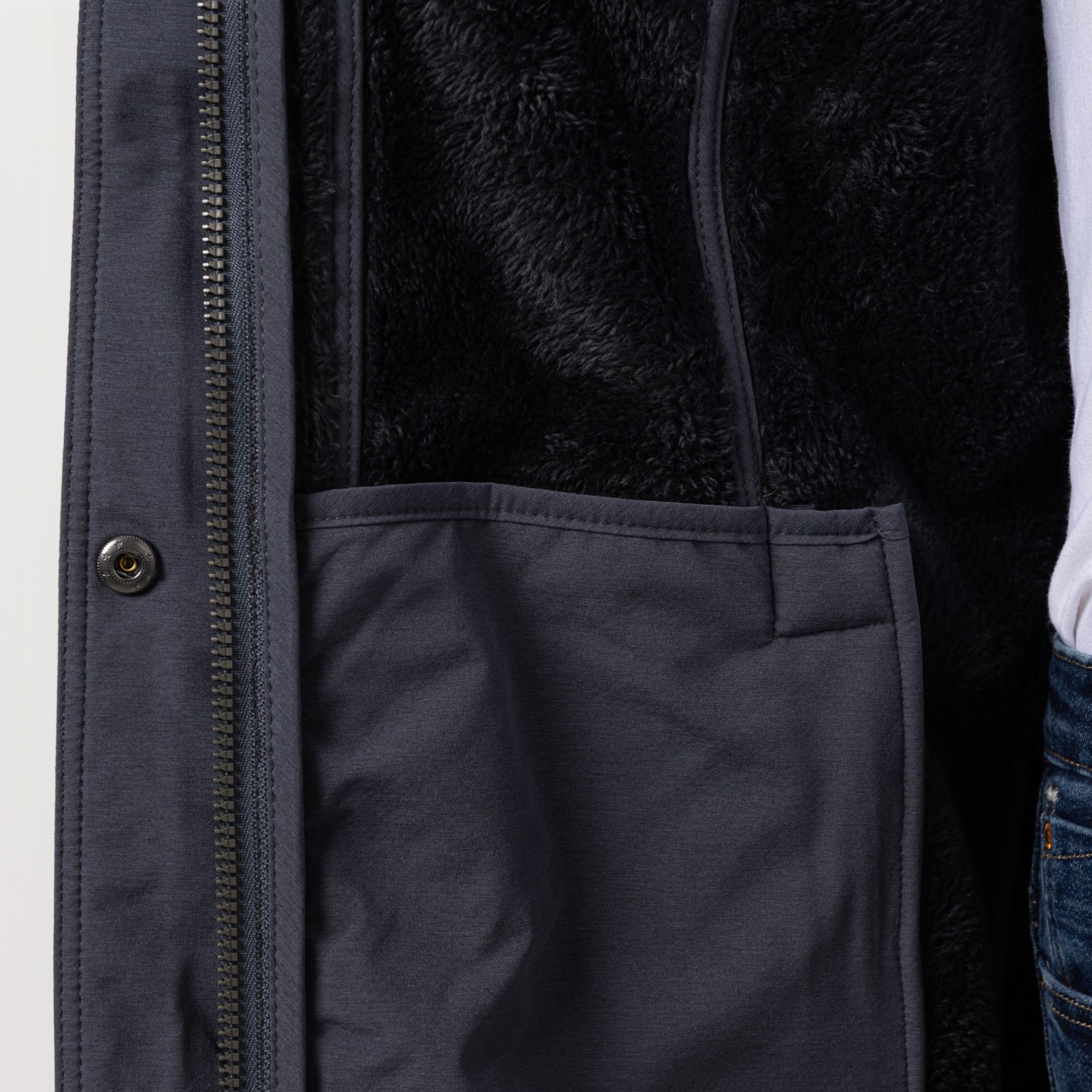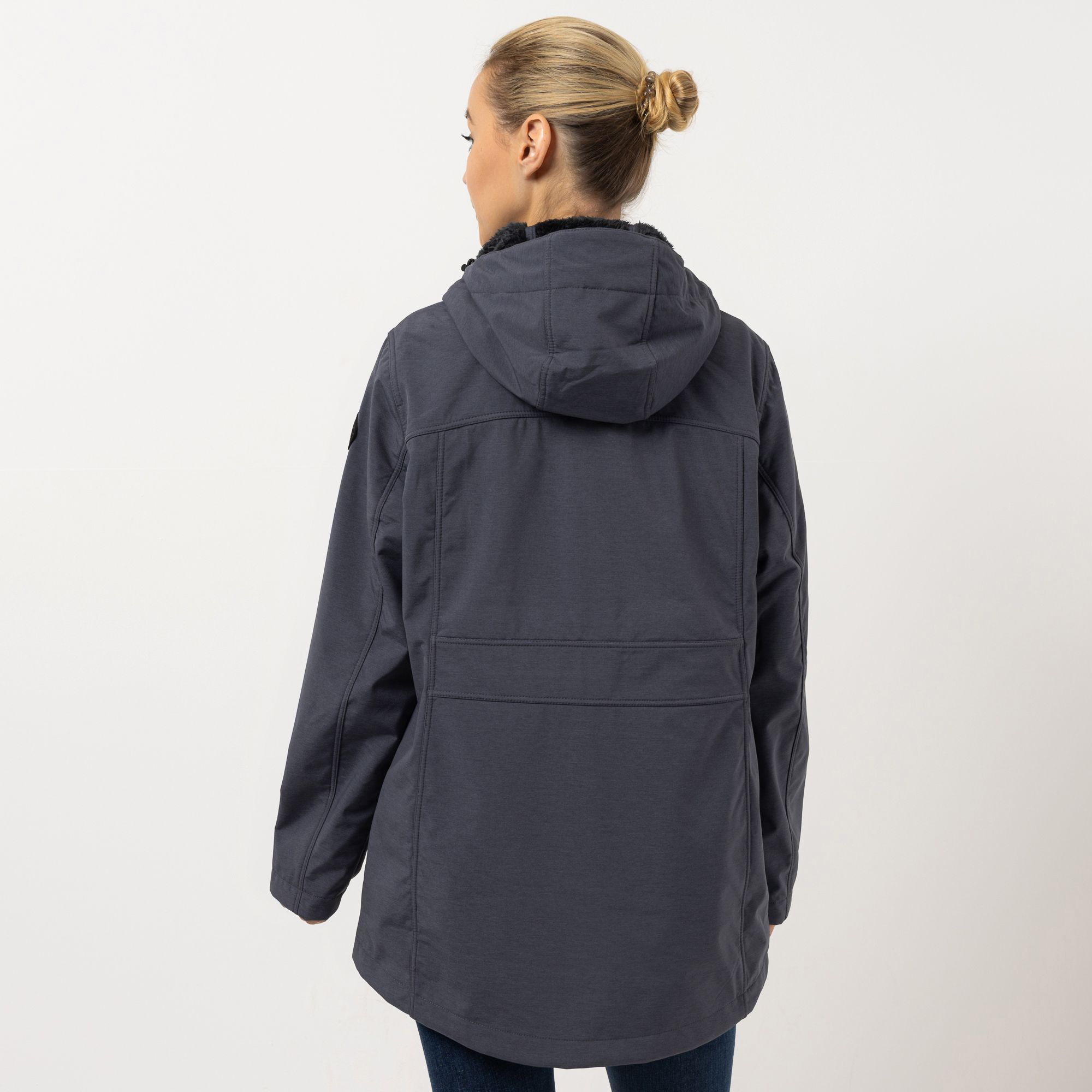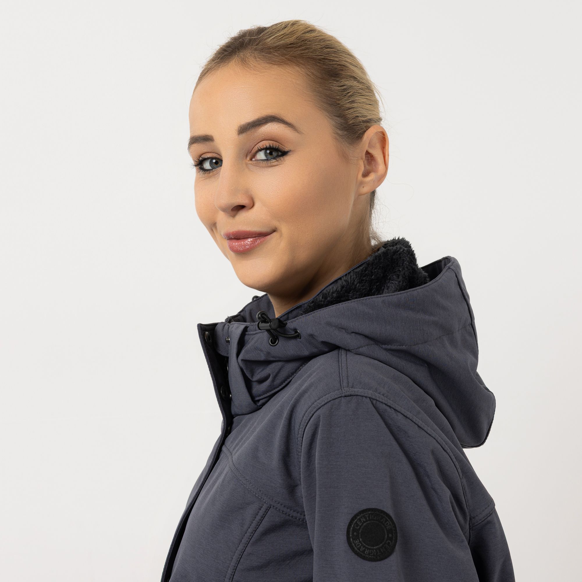 Der Funktions-Softshellparka von CENTIGRADE verbindet sportlichen Komfort mit praktischen Details und einem kuscheligen Teddyfleece-Design.
