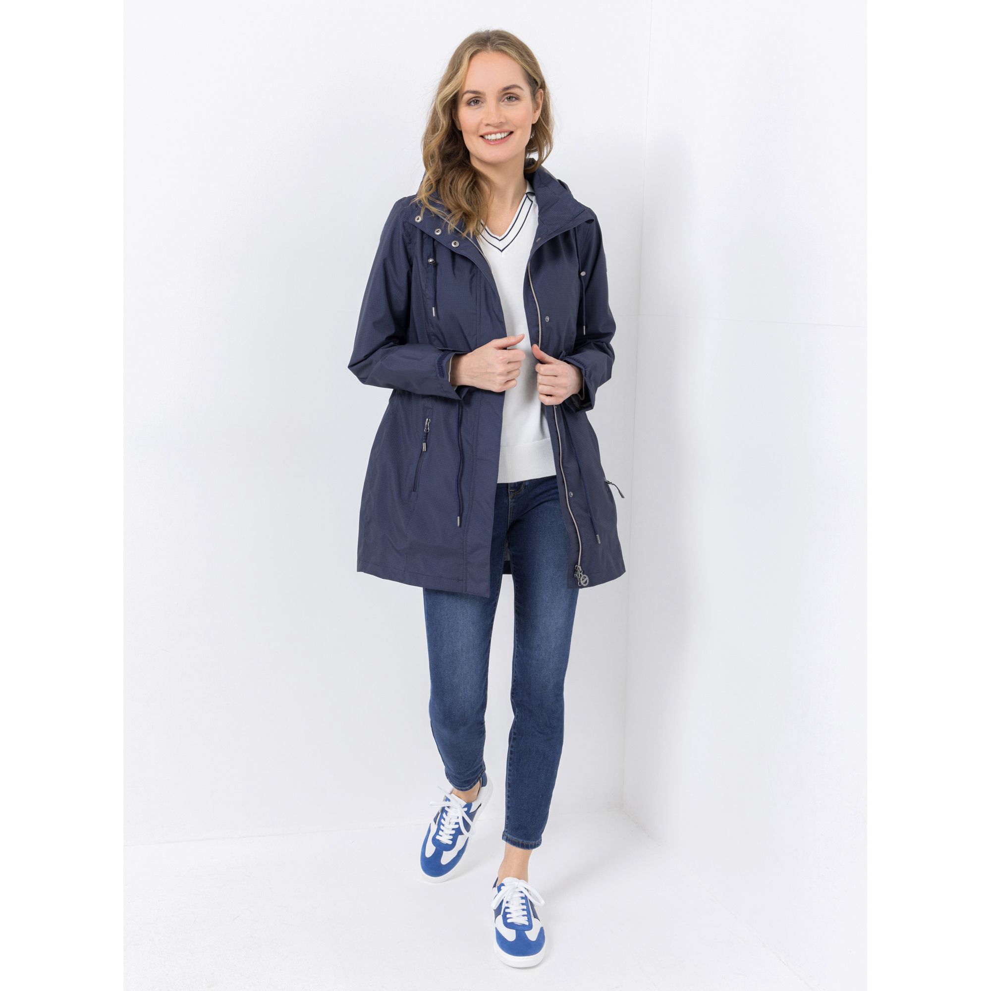 Auch an windigen und regnerischen Tagen behältst du mit deinem neuen Parka die Kontrolle. Die atmungsaktive Beschaffenheit sorgt für ein angenehmes Tragegefühl, während modische Details wie die Kordeln an Taille und Kapuze für einen modernen Look sorgen. Die funktionalen Elemente wie der Schlüsselfinder und die vielen Taschen bieten dir zusätzlichen Komfort und Organisation in deinem aktiven Alltag.