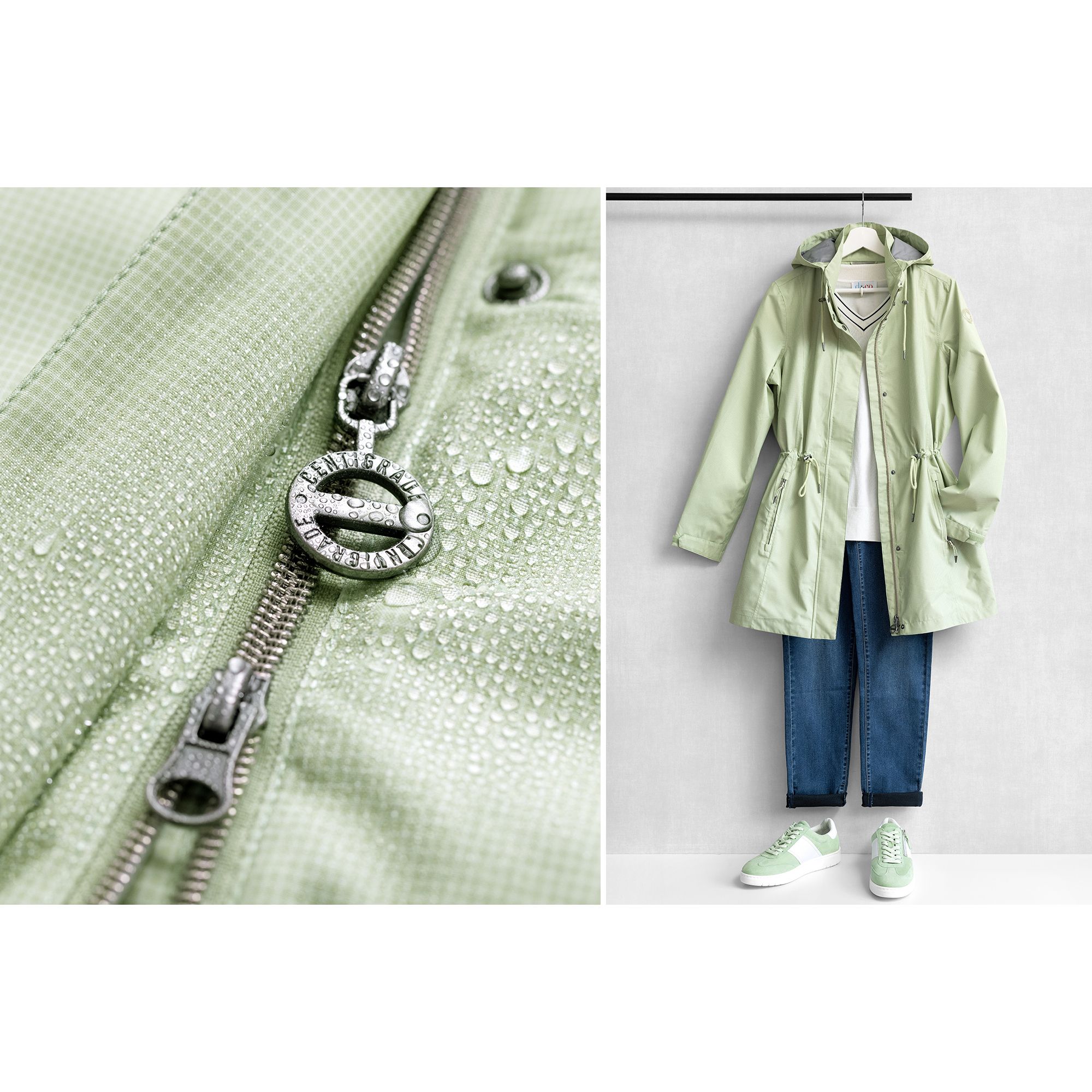 - abzippbare Kapuze mit Kordelzug