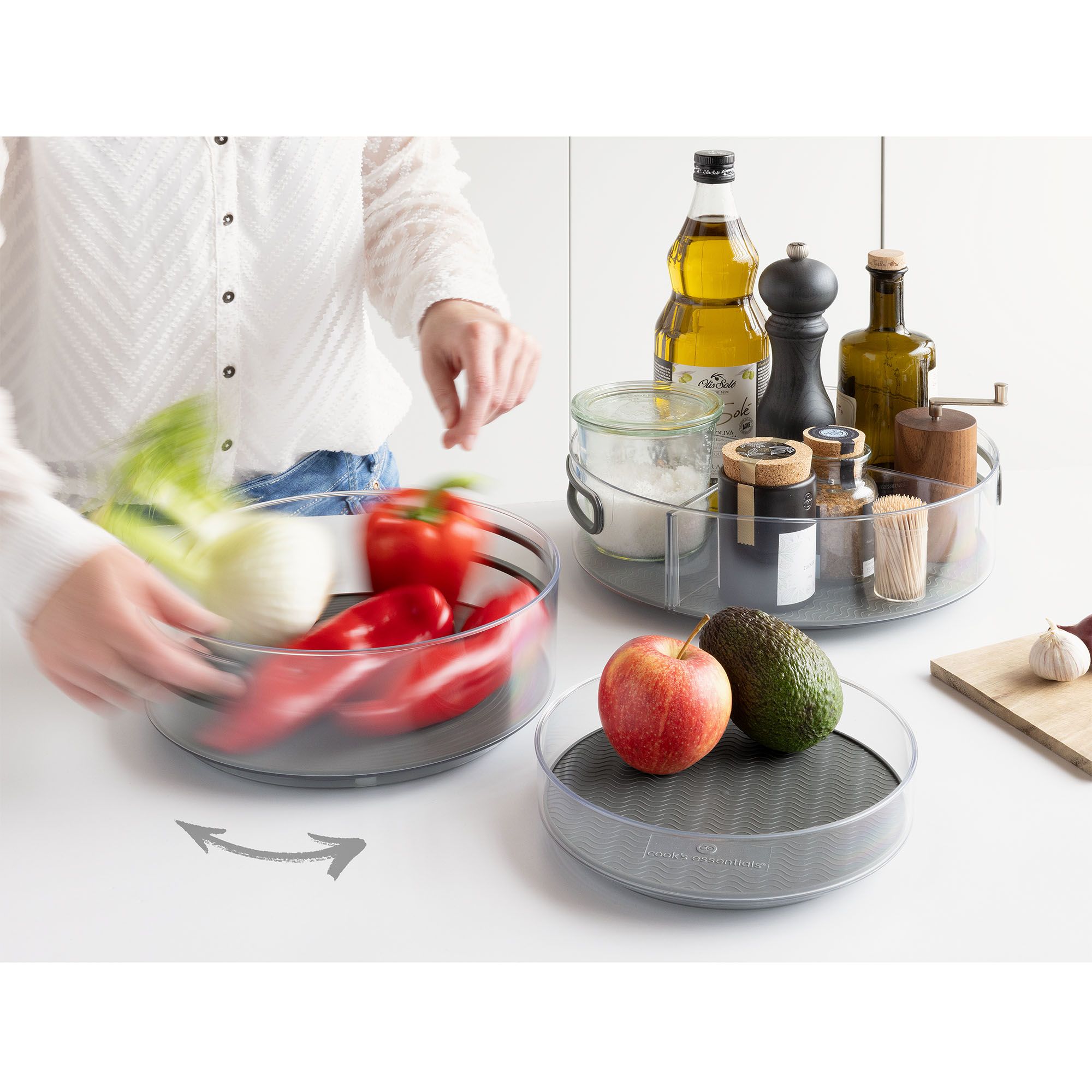 Öfter mal durchdrehen - und dabei sogar Ordnung schaffen! Mit den COOK´S ESSENTIALS Drehtellern Lazy Susan geht das ganz einfach. Das dreiteilige Set kannst du beispielsweise auf dem Esstisch, in der Küche oder auch im (Kühl-)Schrank verwenden, um Chaos zu bannen. Die herausnehmbaren Einlegeböden gibt es in klassischer Farbauswahl. Aber egal, ob anthrazit, salbei, taupe oder weiß - in allen Farben machen die Teller eine gute Figur!