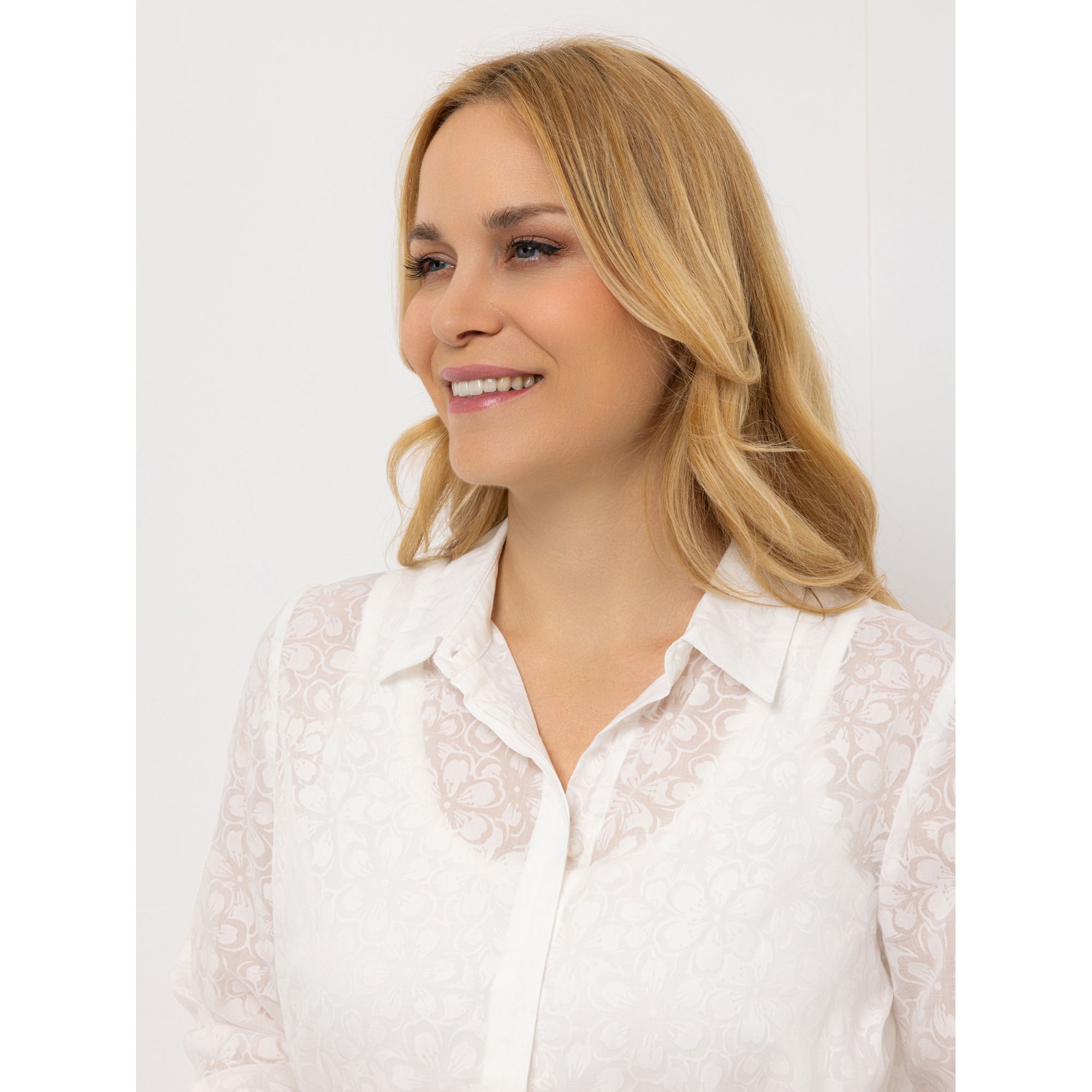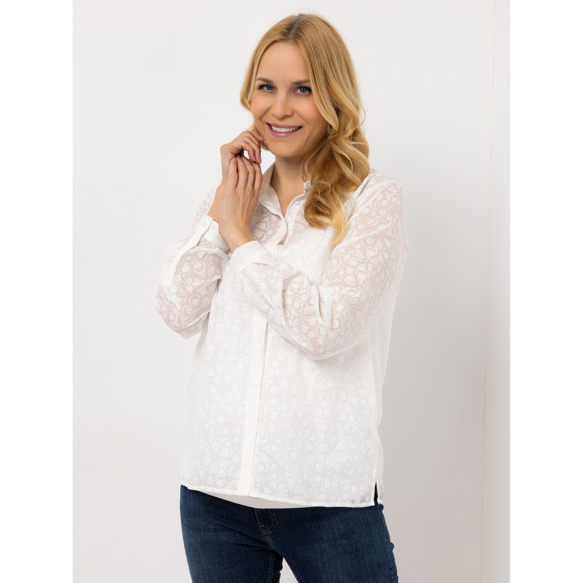- Bluse: leger weit, hüftumspielende Länge