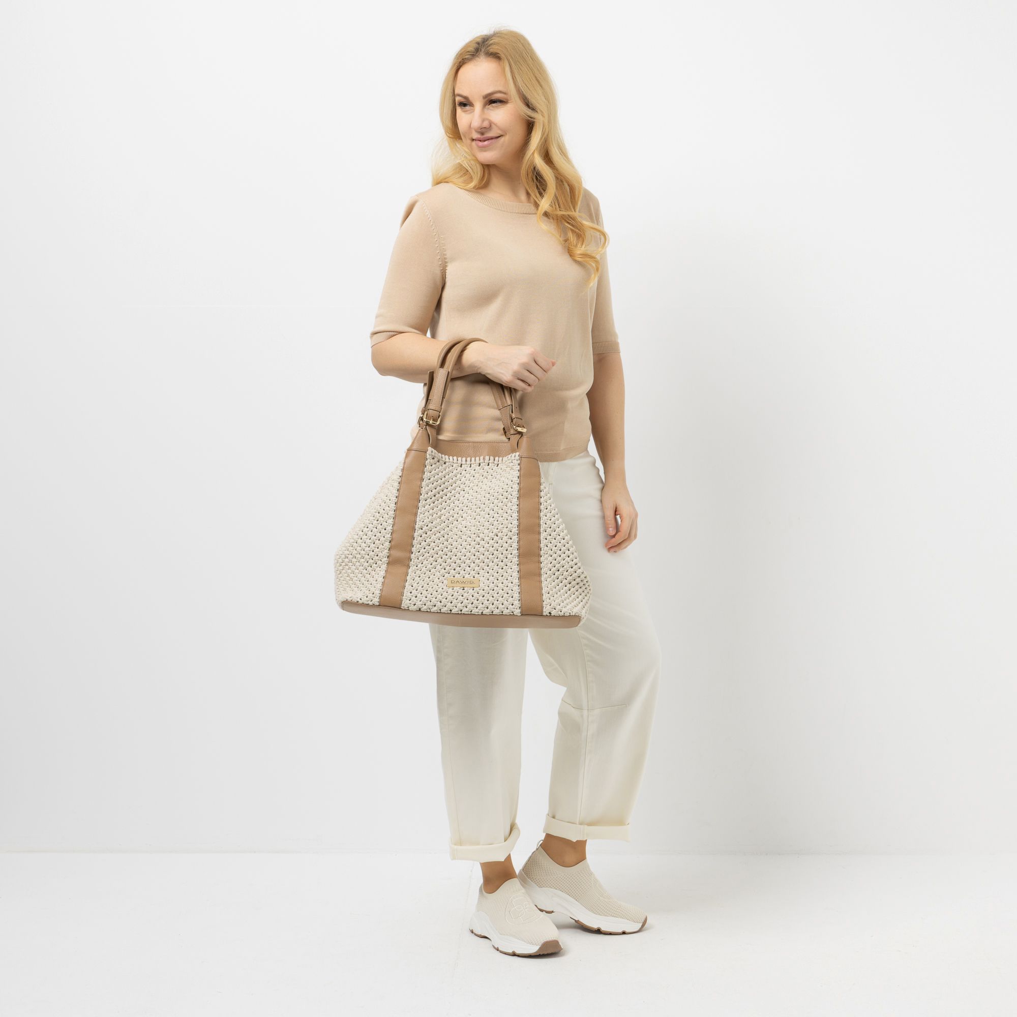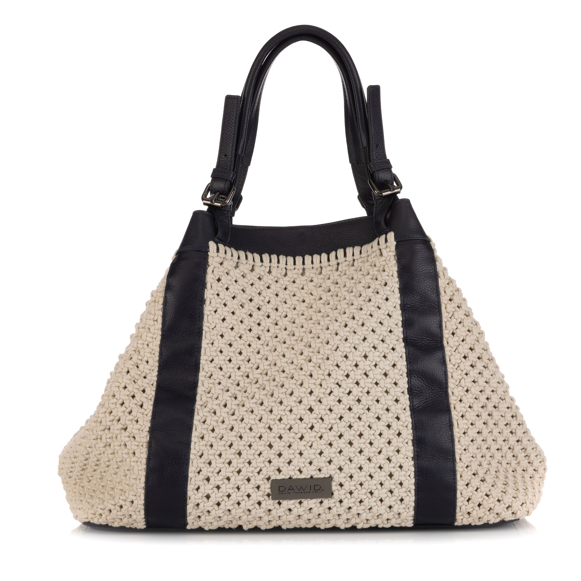 Mit DAWID by Dawid Tomaszewski setzt du auf einen einzigartigen Häkel-Shopper, der mit stilvollen Leder-Details und komfortabler Ausstattung überzeugt.