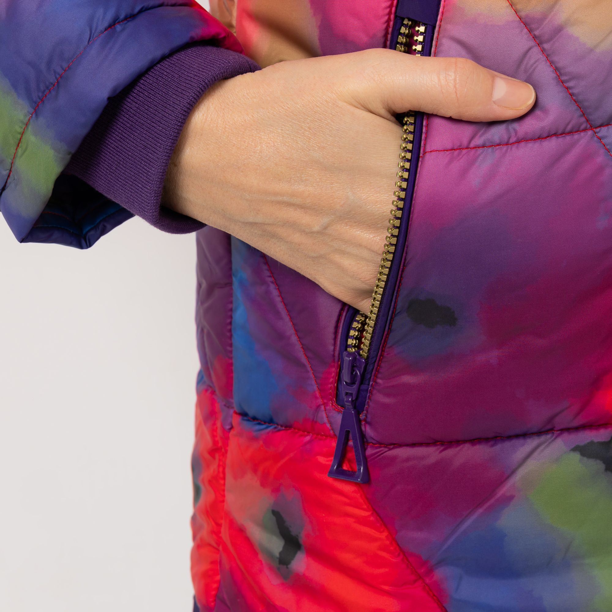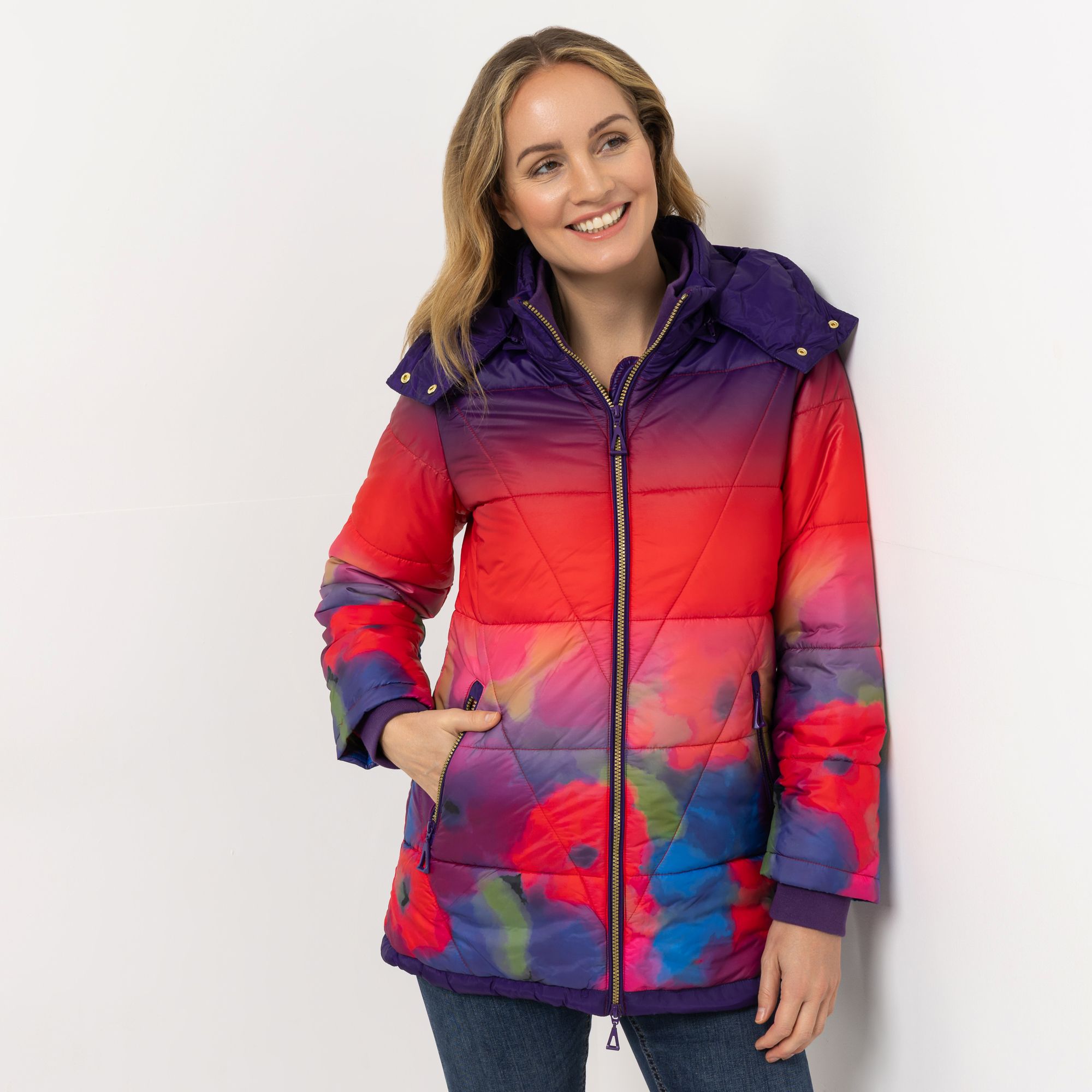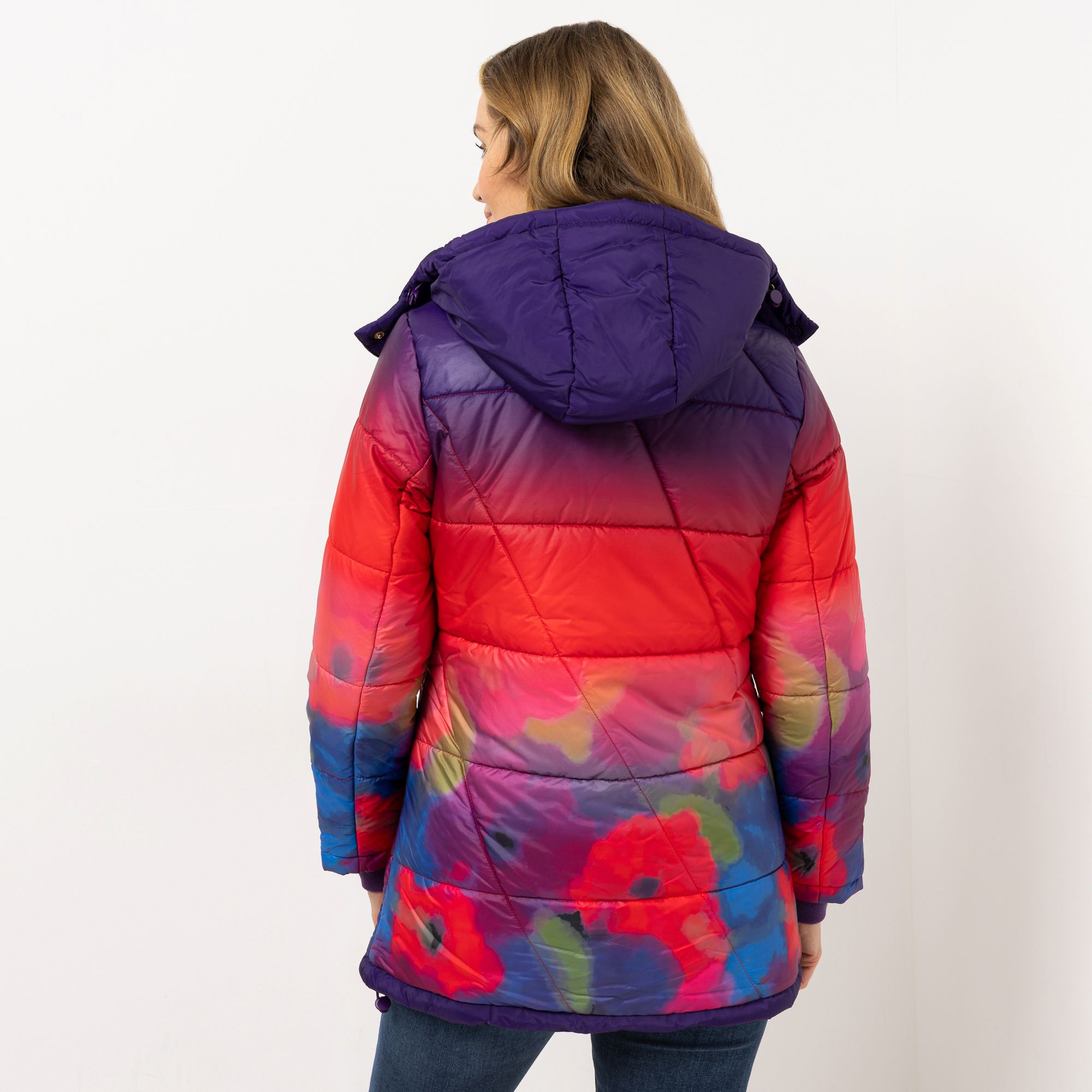 Bunte Steppjacke mit Kapuze
