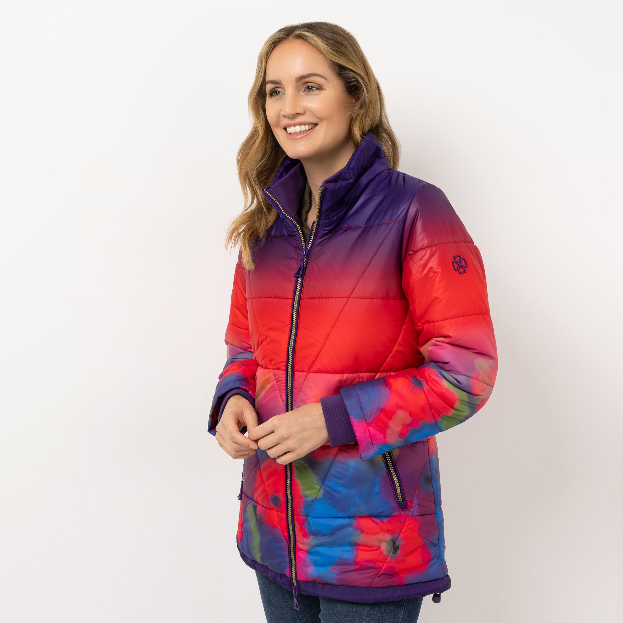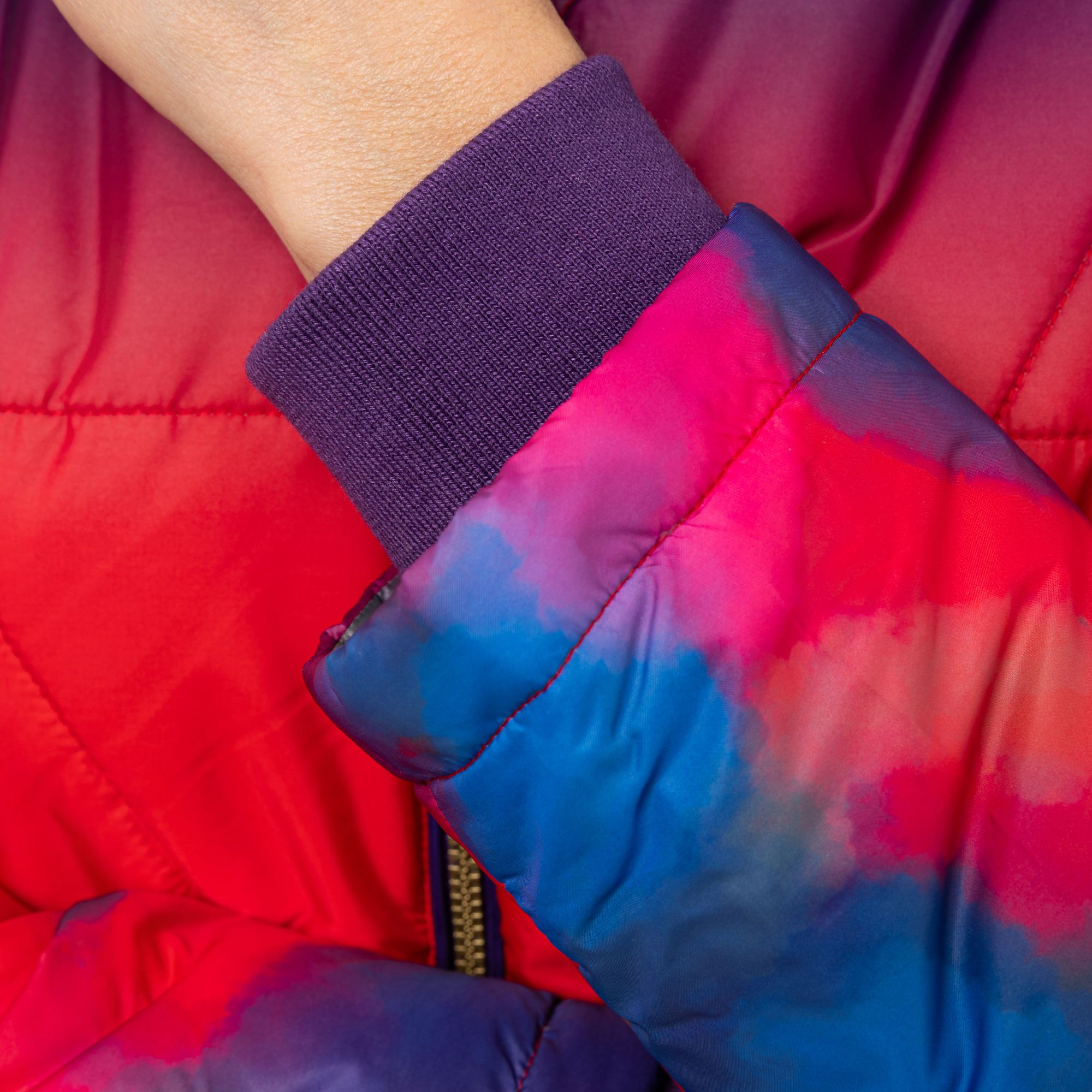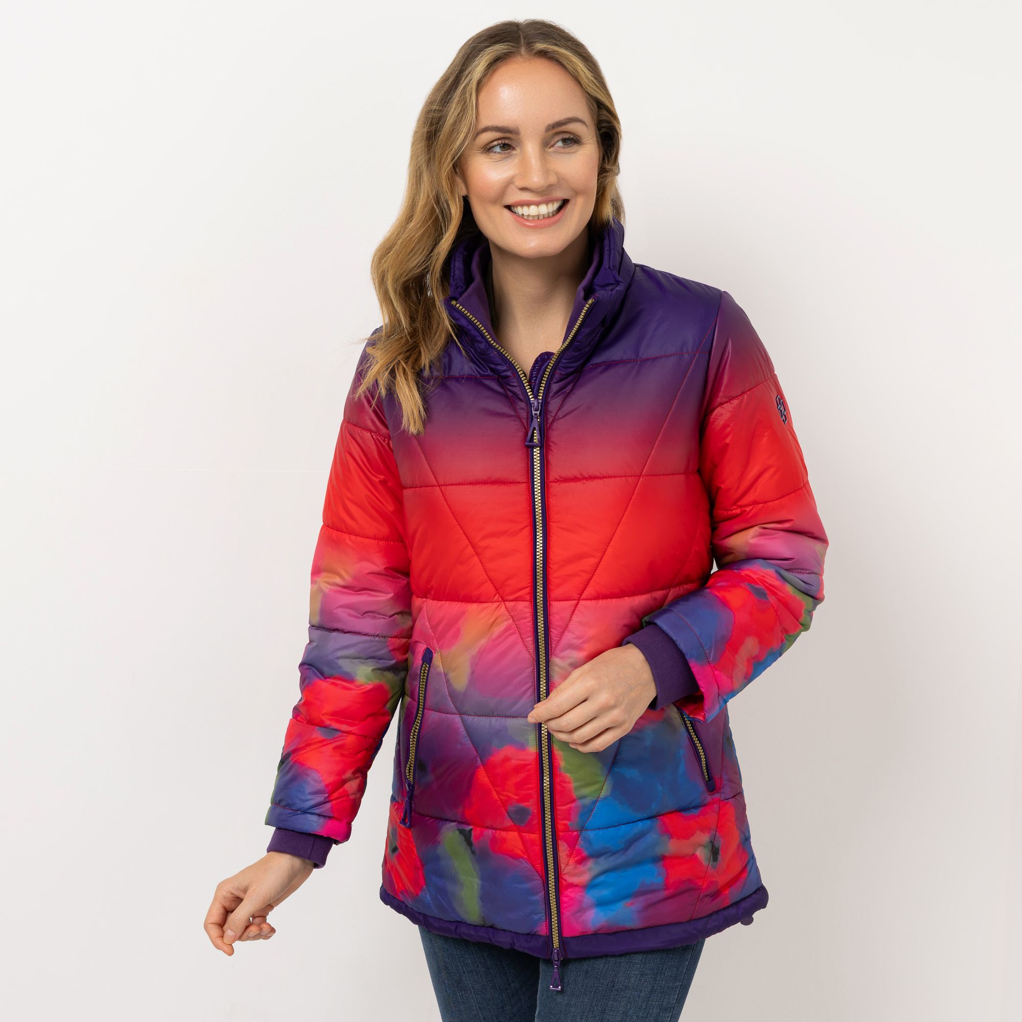 Bunte Steppjacke mit Kapuze