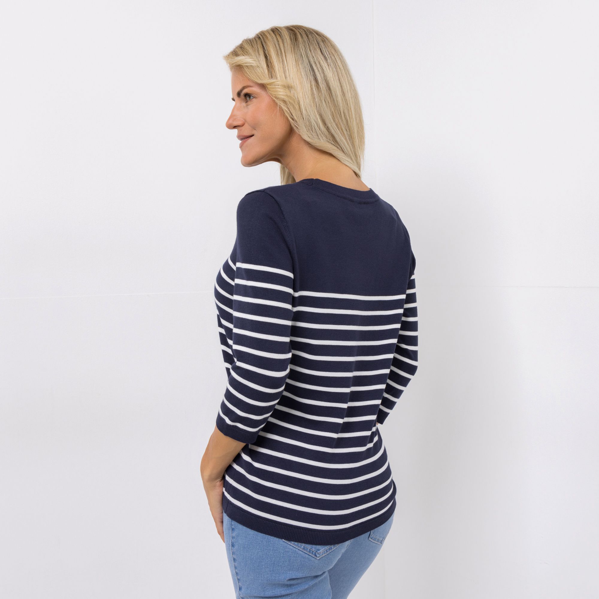 Mit DENIM & CO. bringst du zugleich lässigen Chic und unkomplizierte Vielseitigkeit in deinen Alltag. Zwei Pullover im Set – einer unifarben, einer gestreift – bieten dir jederzeit die Freiheit, entspannt zwischen zurückhaltendem Klassiker und frischem Look zu wechseln.