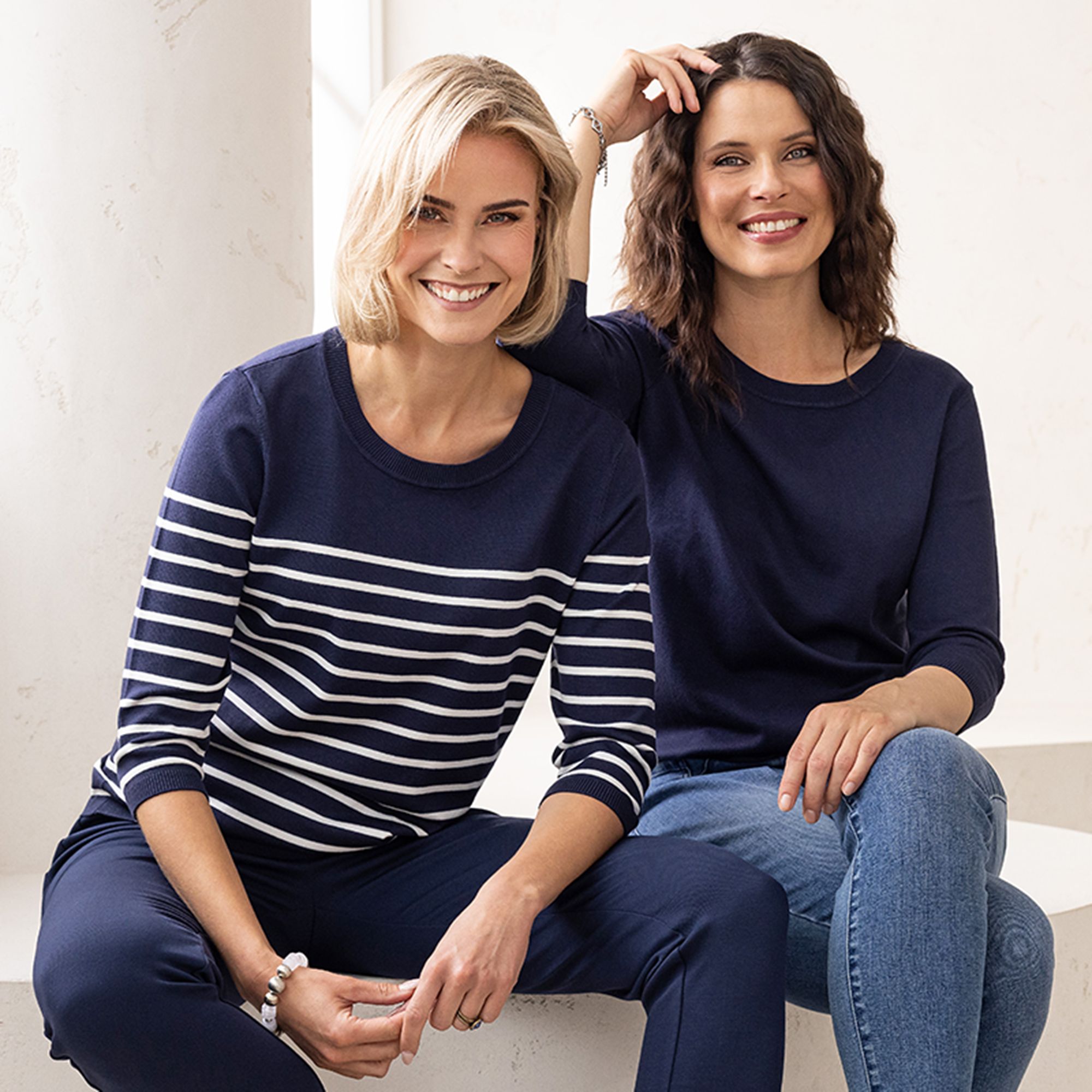 Die Rundhalsausschnitte, die beliebten Rippbündchen und das angenehme Mischgewebe sorgen für einen relaxten Stil, den du individuell zu Hose oder Rock kombinieren kannst – ob leger für die Freizeit oder mit einem Hauch Eleganz für den besonderen Anlass.