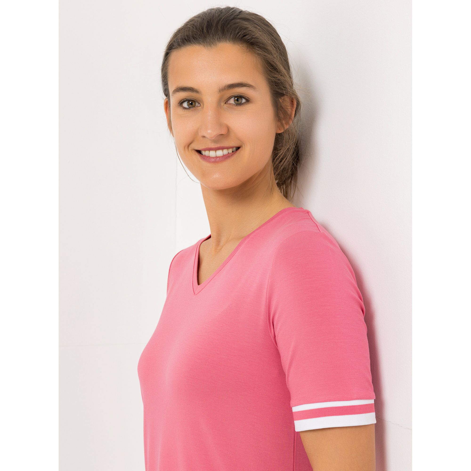Ein dezenter Kontrast verleiht dem DENIM & CO. Shirt seinen besonderen Look: Am Ärmelsaum ist ein Ripsband mit Kontraststreifen eingearbeitet.