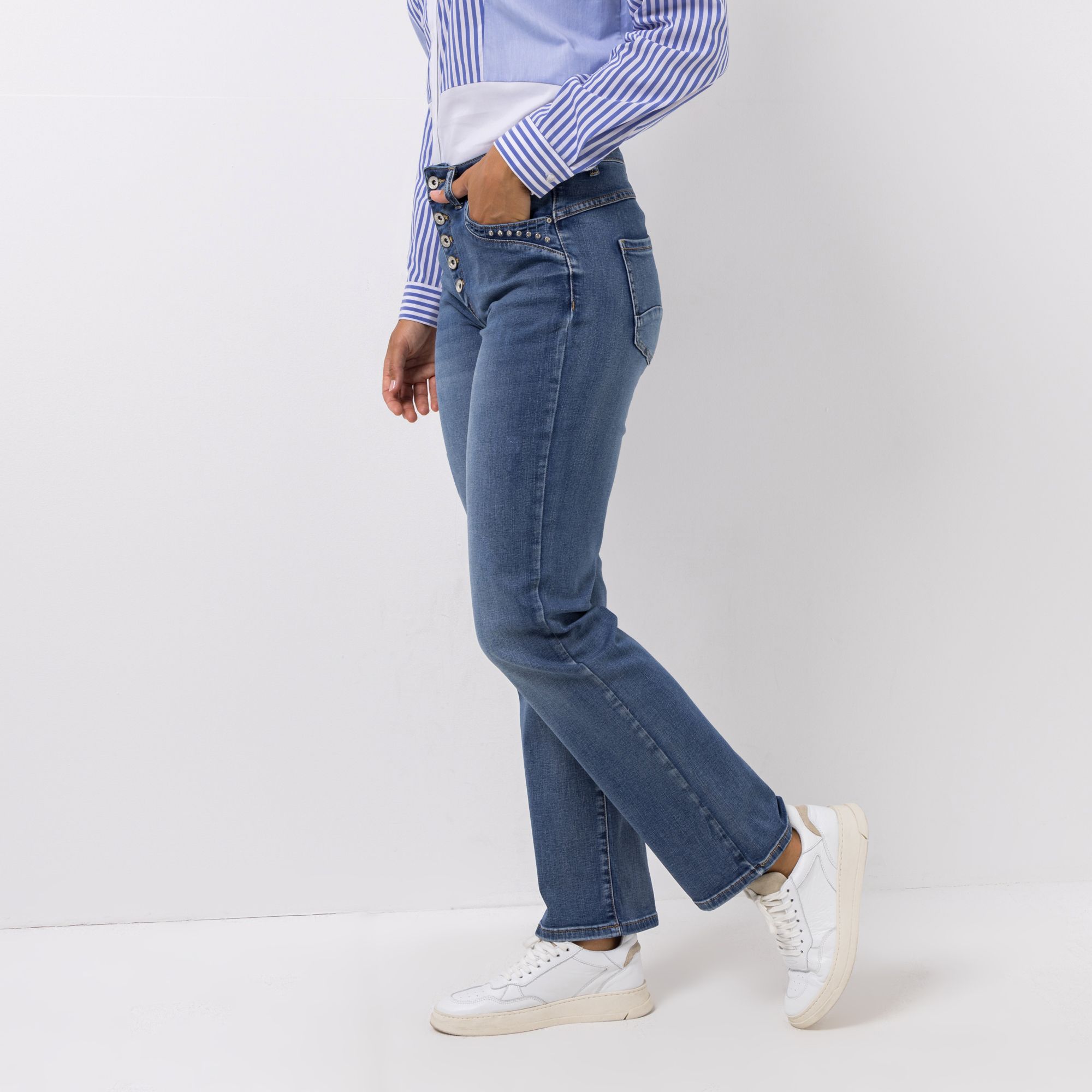 Style olé! Die DINE 'N' DANCE Jeans Lambada sorgt mit angesagt weitem Bein & Ziersteindetails für einen unverwechselbaren Look und bringt eine Portion Lässigkeit in deinen Style – so wird jedes Outfit zum Blickfang.