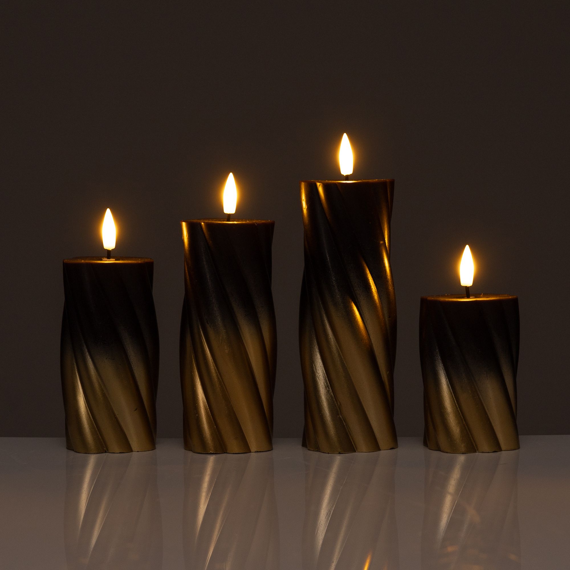 Die LED-Kerzen von ELAMBIA präsentieren sich voller Eleganz: Lang und schlank, gedreht und eine Hälfte in Gold – damit veredelst du jedes Wohn- und Esszimmer! Das sanfte LED-Licht macht die Kerzen auch zur idealen Entspannungsbeleuchtung im Schlafzimmer oder zum Wellnesslicht beim Baden.