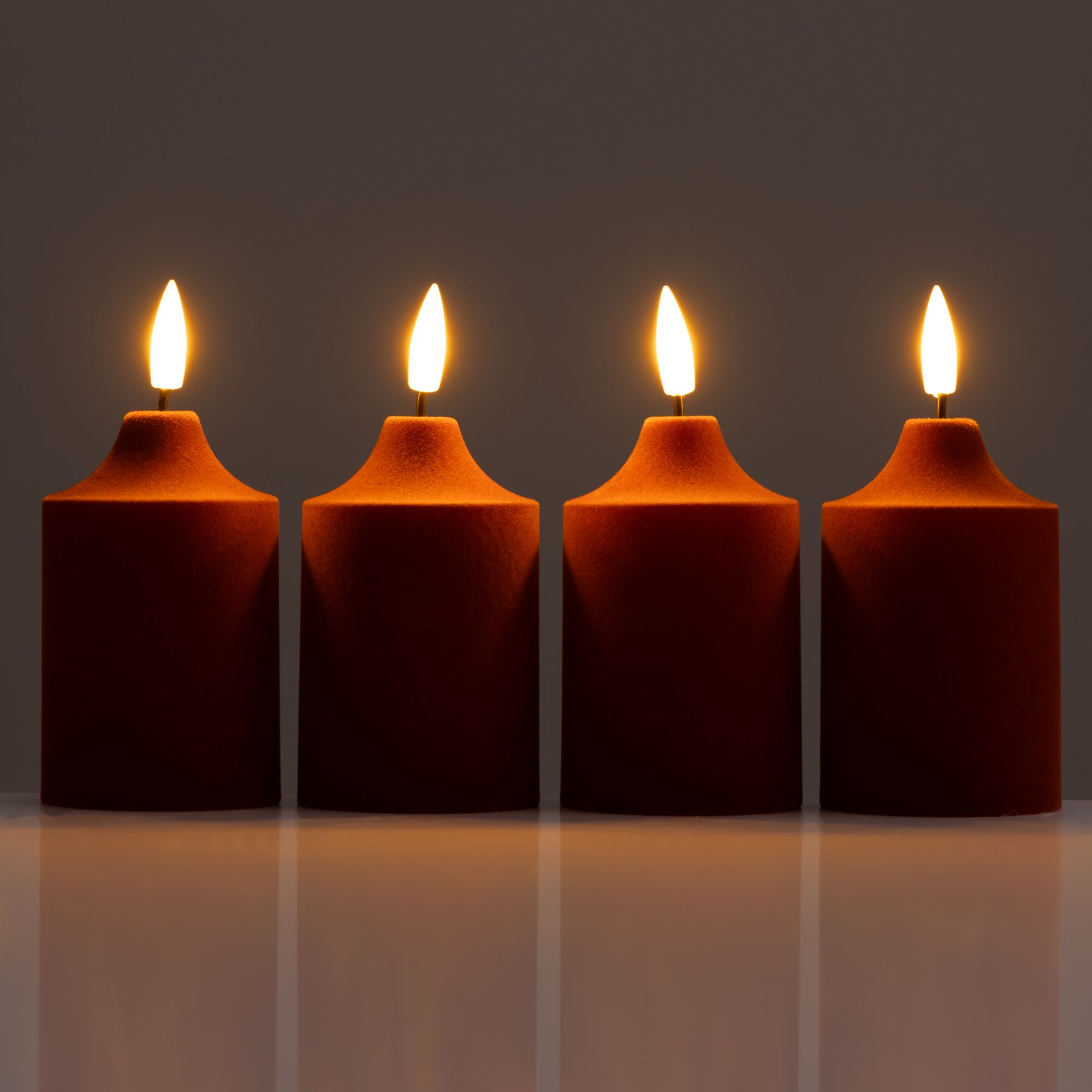 Die ELAMBIA Votivkerzen mit LED-Technik haben durch ihre samtige Oberfläche eine besonders edle Ausstrahlung. Das Set enthält vier Stück.